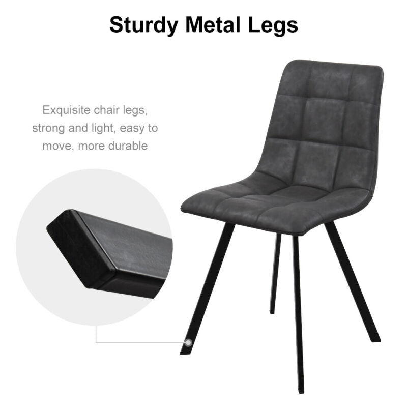 2x Dining Chairs Grey Soft Padded Seat Metal Legs Kitchen Lounge Furniture