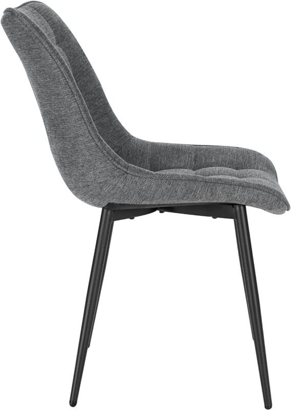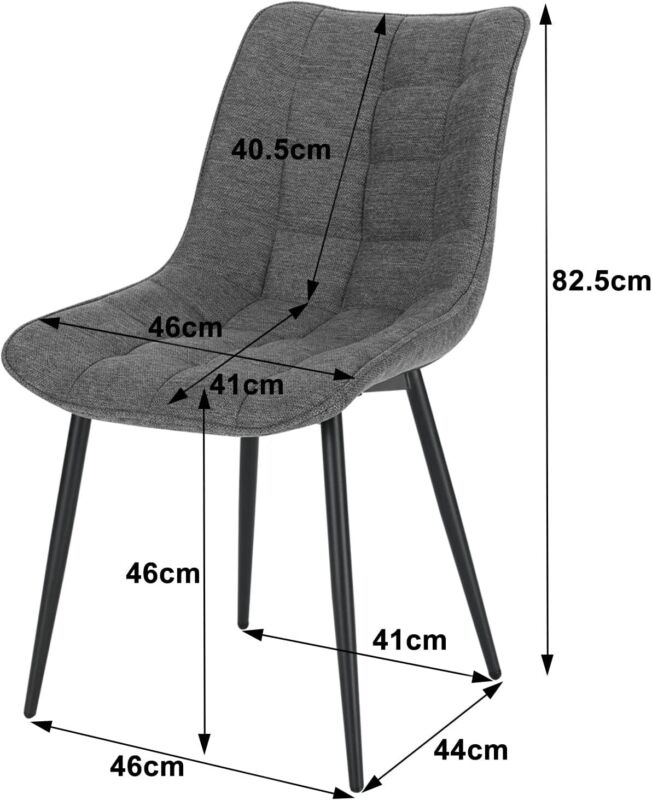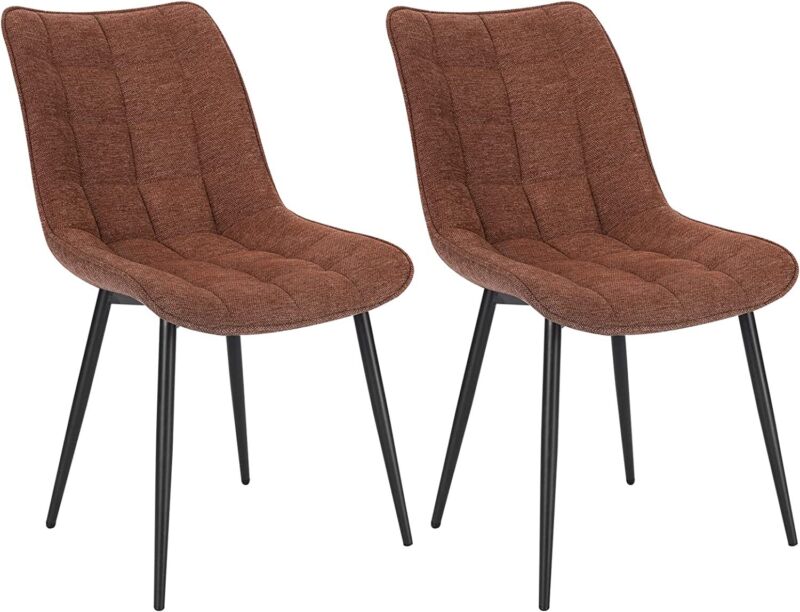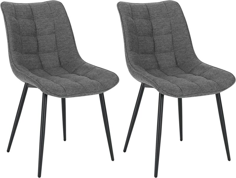 2x Dining Chairs Linen Padded Seat Metal Legs Kitchen Chairs Home Office
