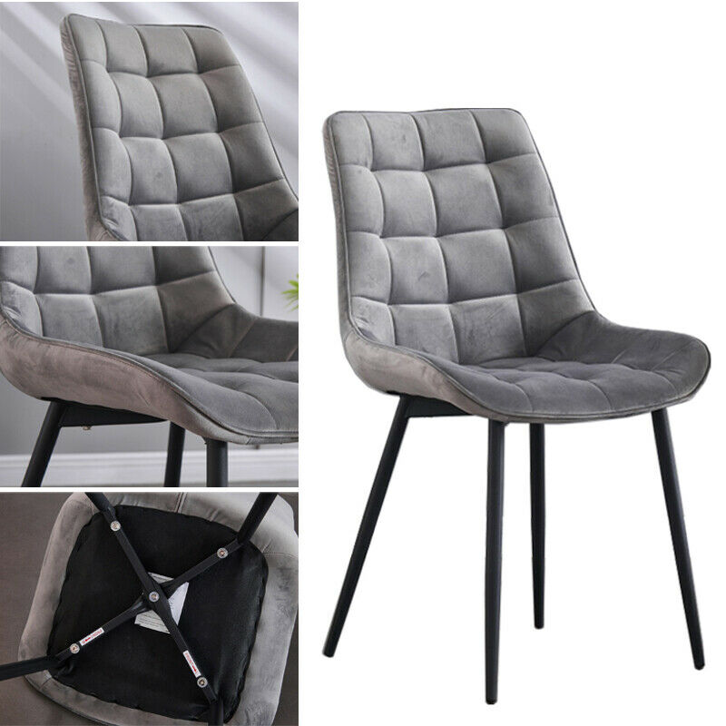 2X Dining Chairs Living Room Chairs with Velvet Metal Backrest Counter Chairs
