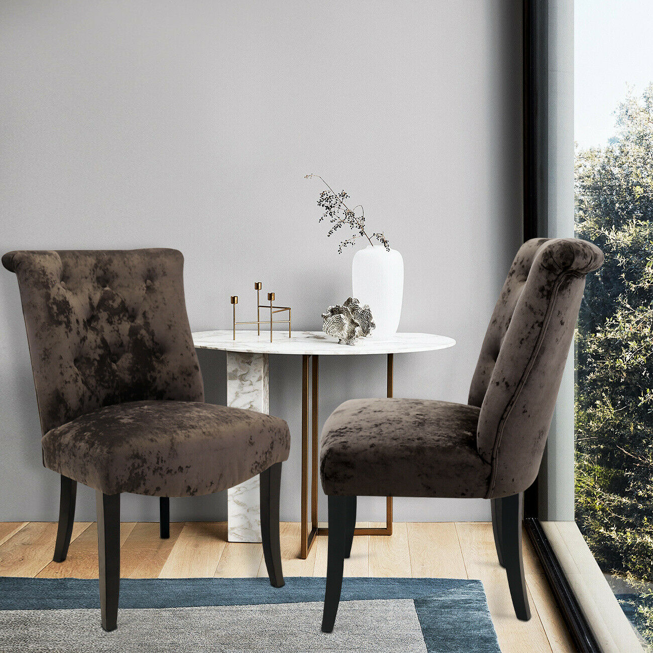 2x Dining Chairs Set Velvet Soft Padded Seat Wood Legs Office Home Kitchen Chair