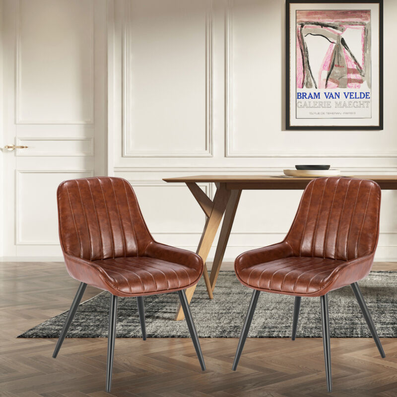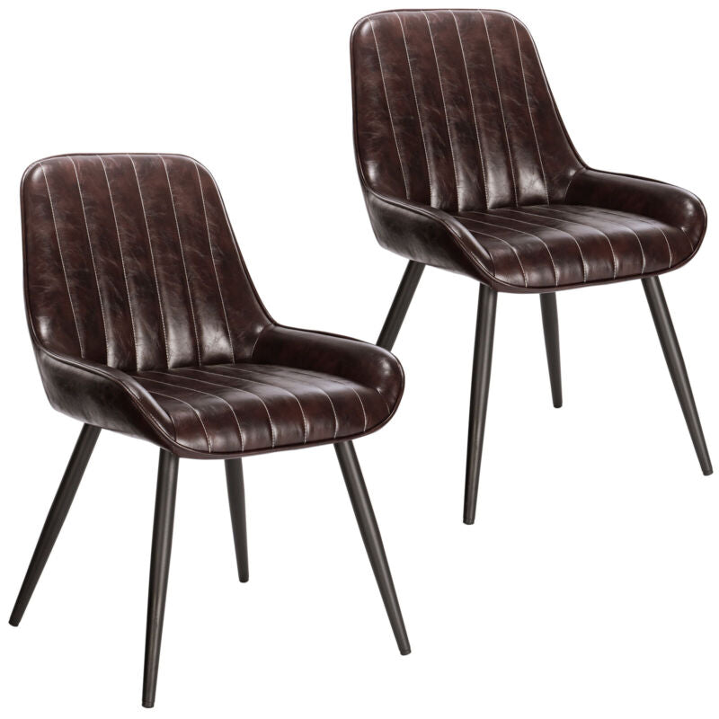 2x Dining Chairs w/ Backrest Faux Leather Padded Chairs Living Room Restaurant