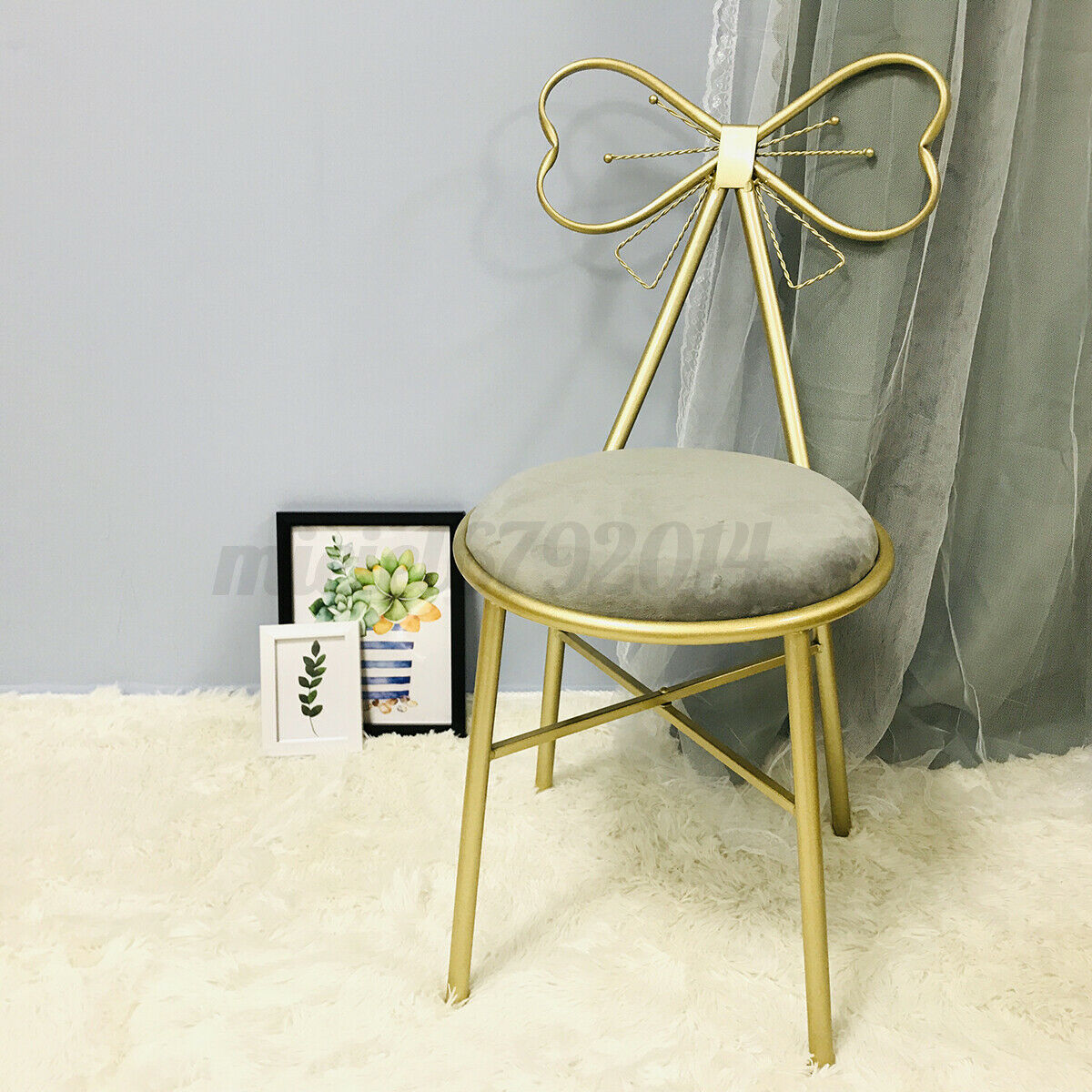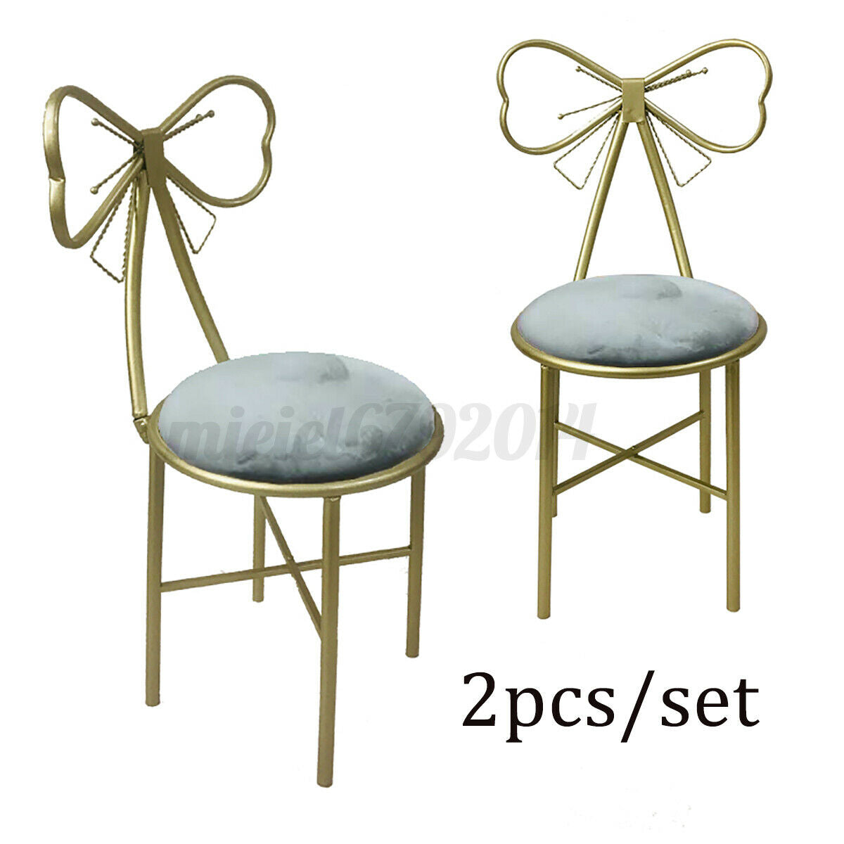 2x Dressing Table Stool Velvet Chair Bedroom Makeup Vanity Chair w/Backres //