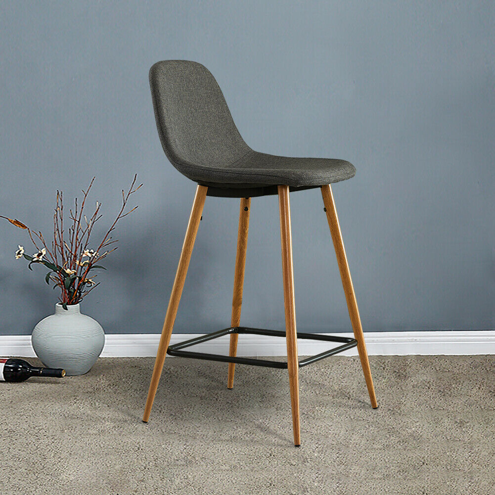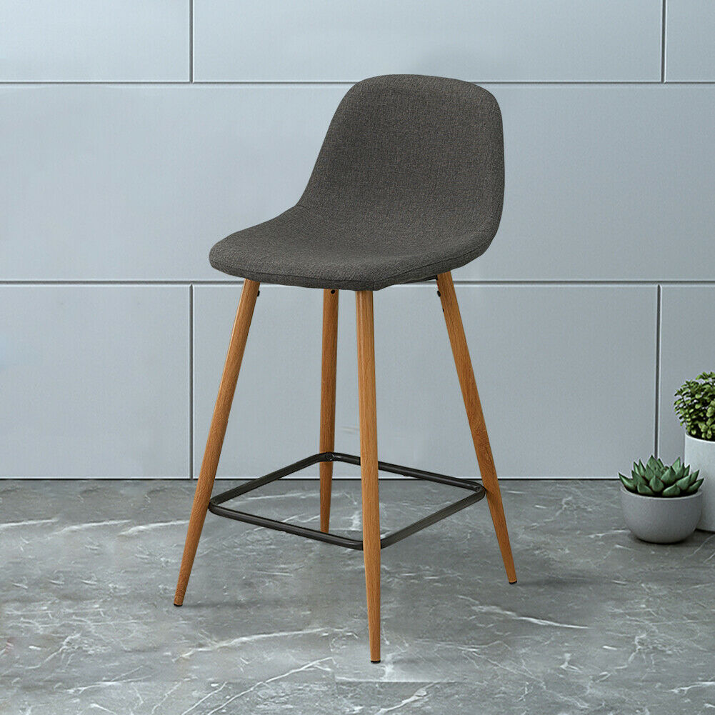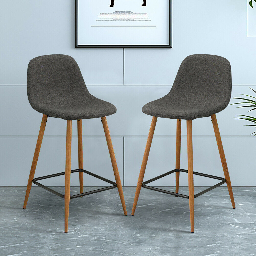 2X Fabric Bar Stools Breakfast Chairs Gery Pub Counter Kitchen Metal Legs