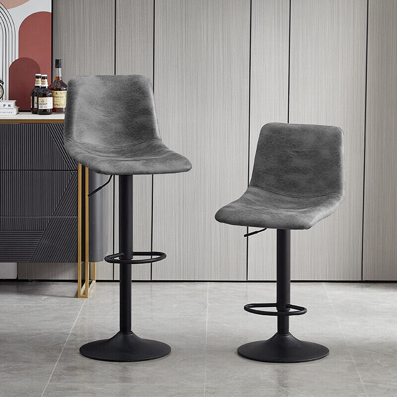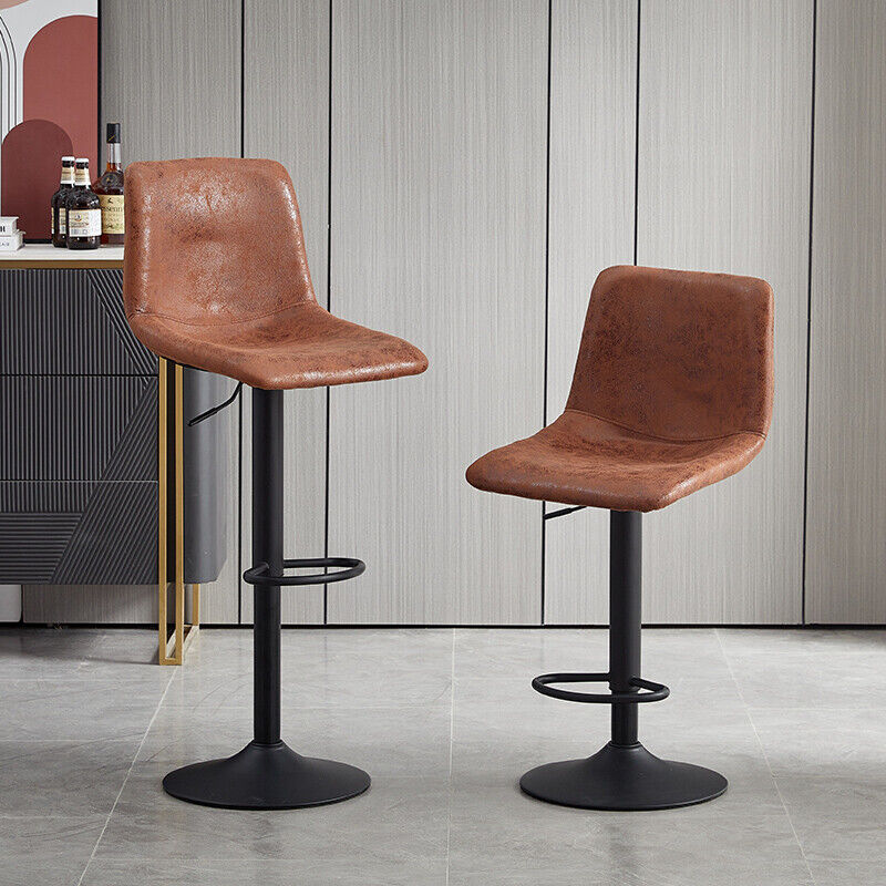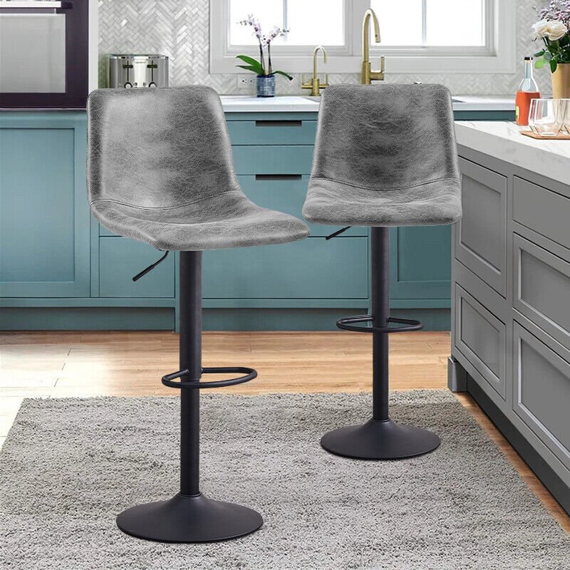 2x Faux leather Bar stools Gas lift Swivel Black Metal Base Kitchen Chairs Pub
