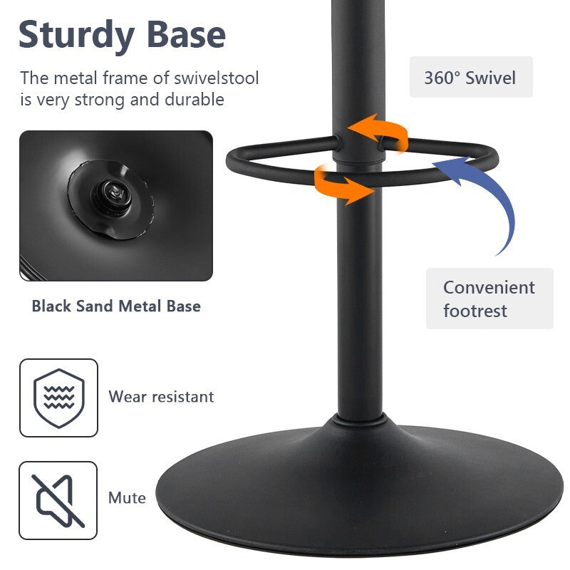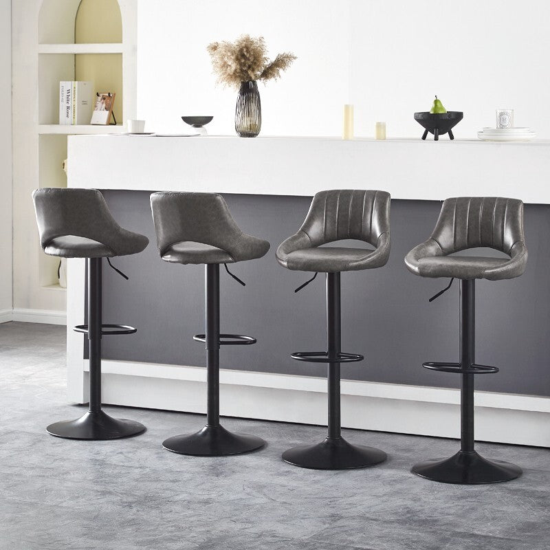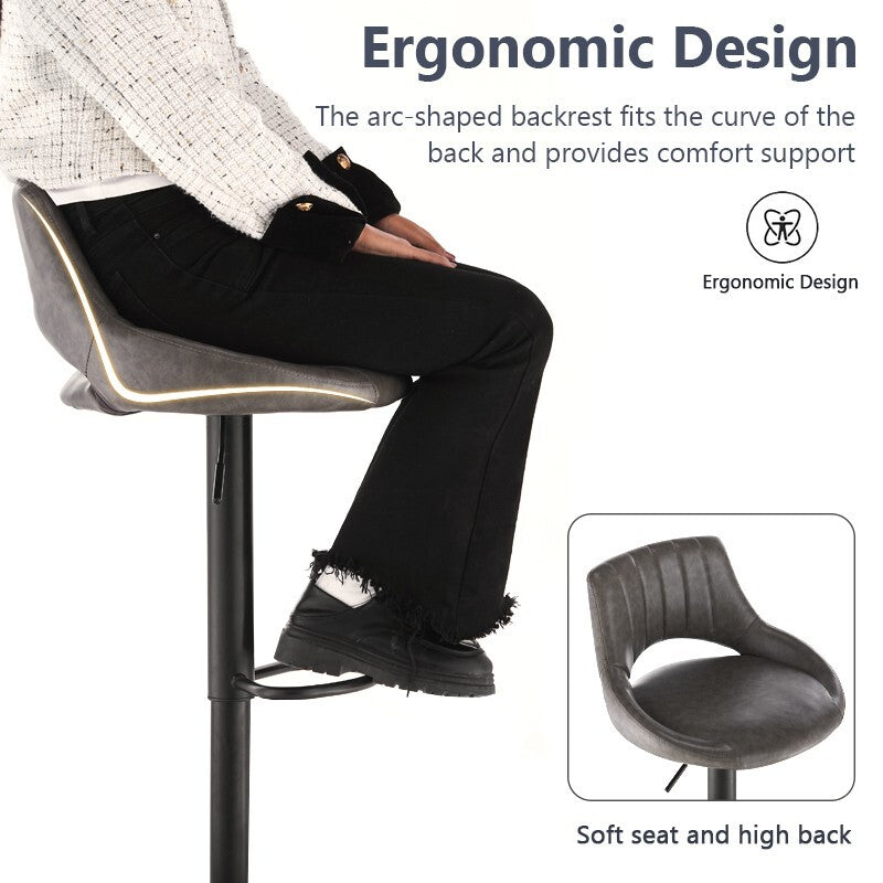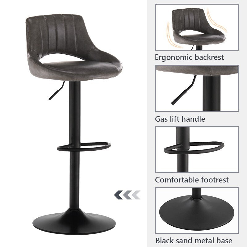 2x Faux Leather Bar Stools Grey Adjustable Gas Lift Swivel Kitchen Pub Chair