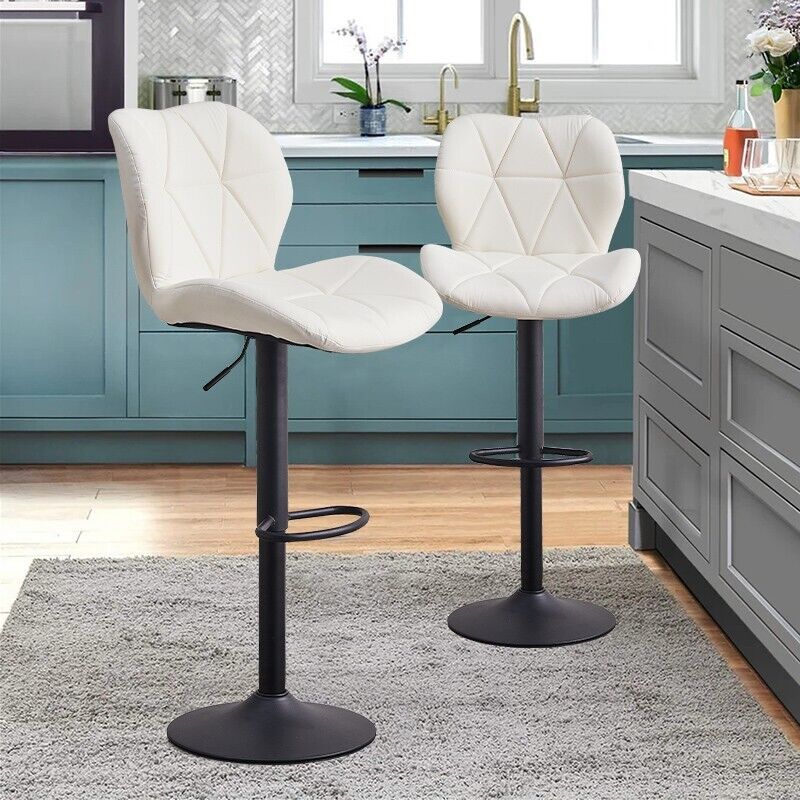 2x Faux Leather Bar Stools Kitchen Dining Room Chairs Gas lift Swivel Modern