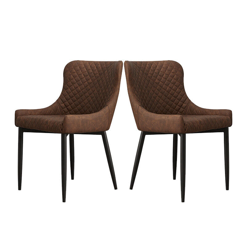 2x Faux Leather Dining Chairs Padded Seat Kitchen Office Chair Brown Vintage
