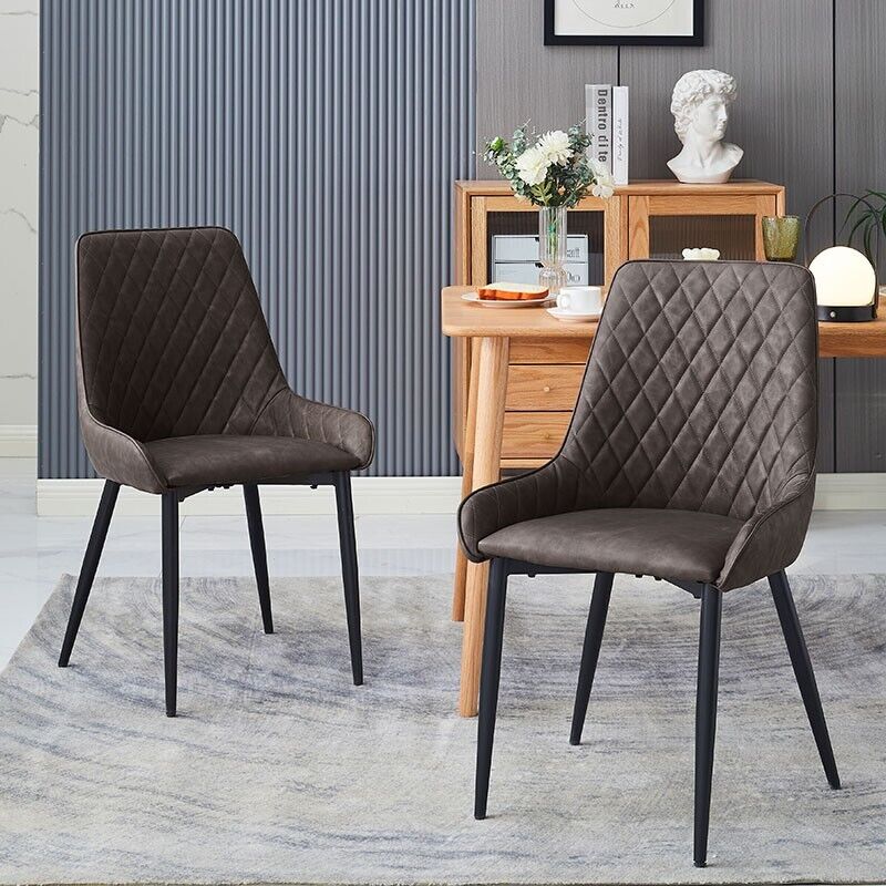 2x Faux Leather Soft Padded Dining Chairs Set Metal legs Restaurant Chair Brown