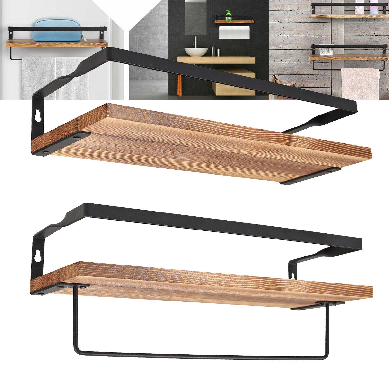 2X Floating Shelf Brackets Shelves Bookshelf Wall Mount Rack Storage Metal Wood