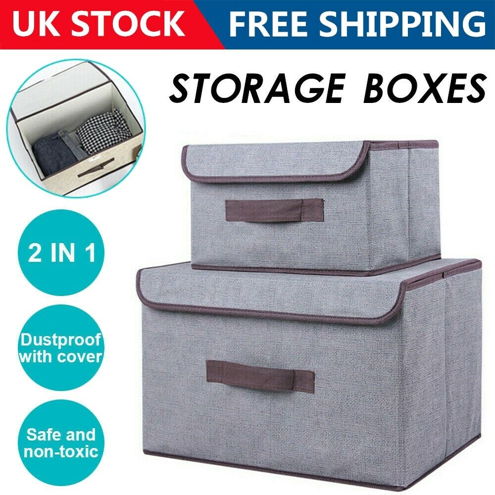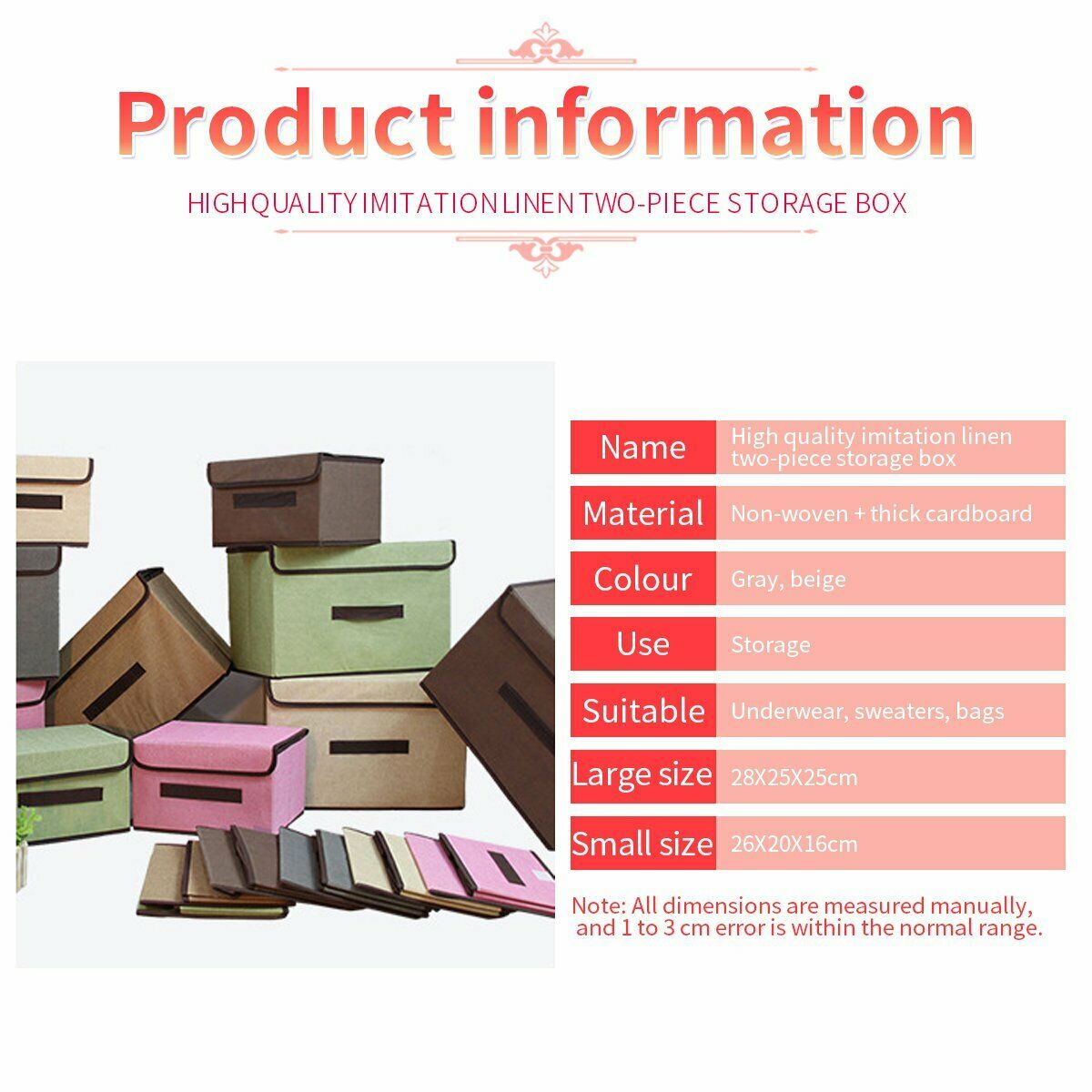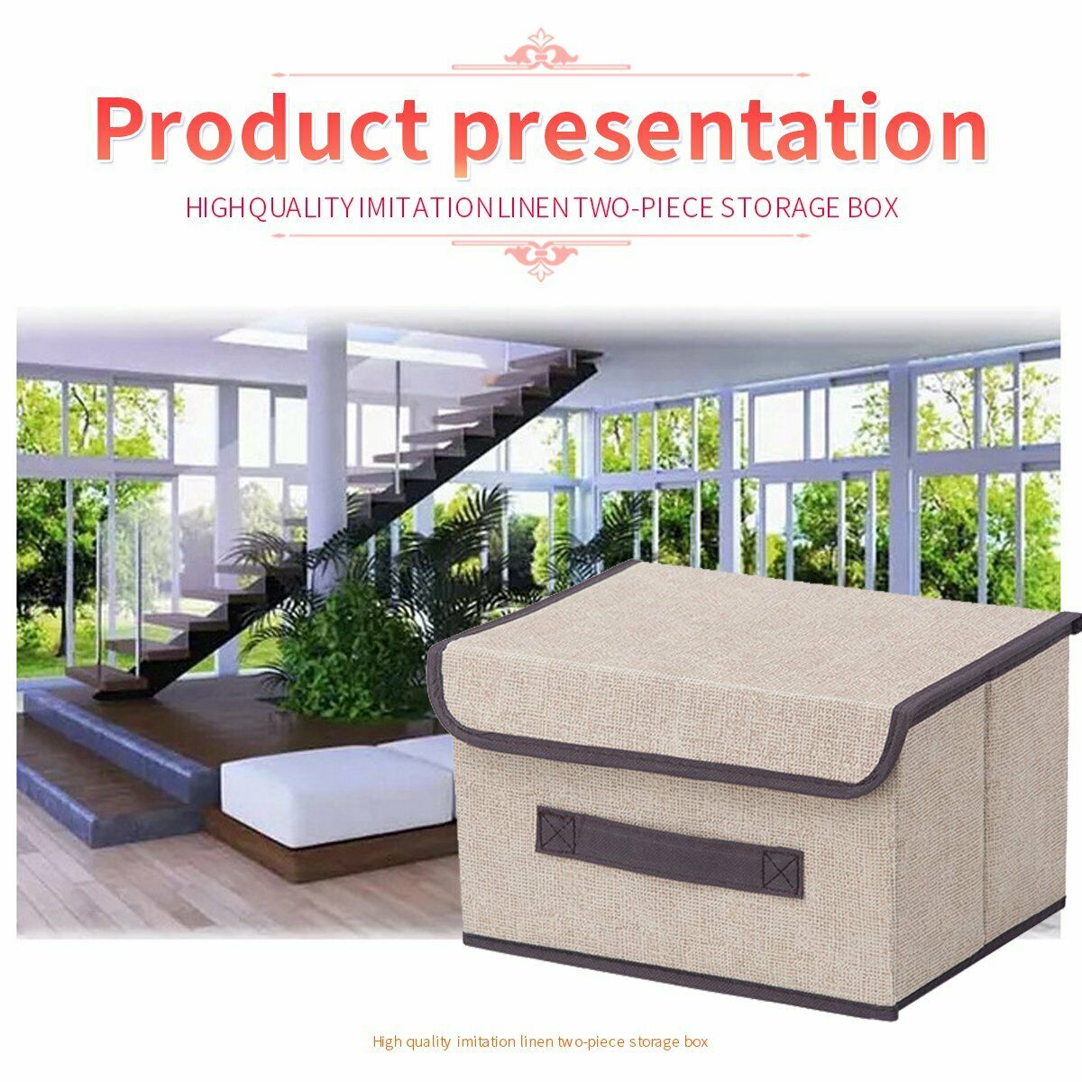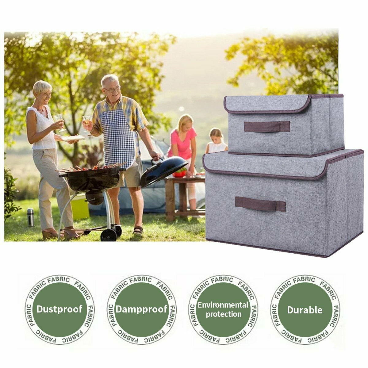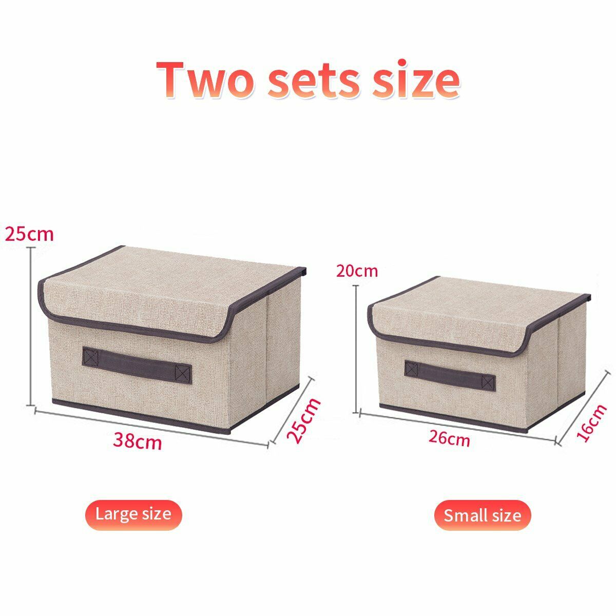 2x Foldable Canvas Storage Bag Collapsible Folding Box Fabric Cube Cloth Basket