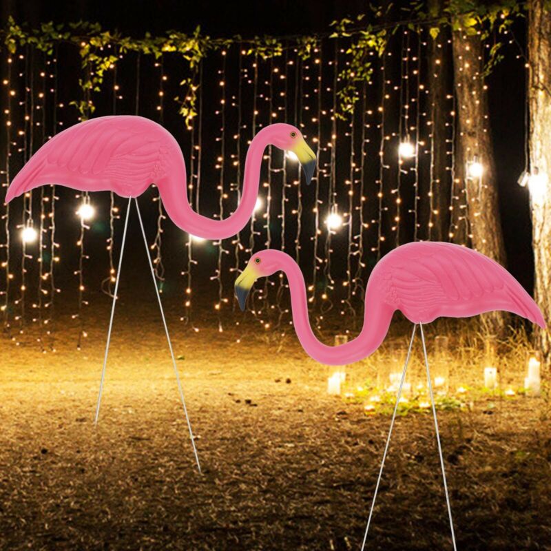 2x Garden Pink Flamingo Bird Lawn Pond Figurine Ornaments Patio Statue Figure UK
