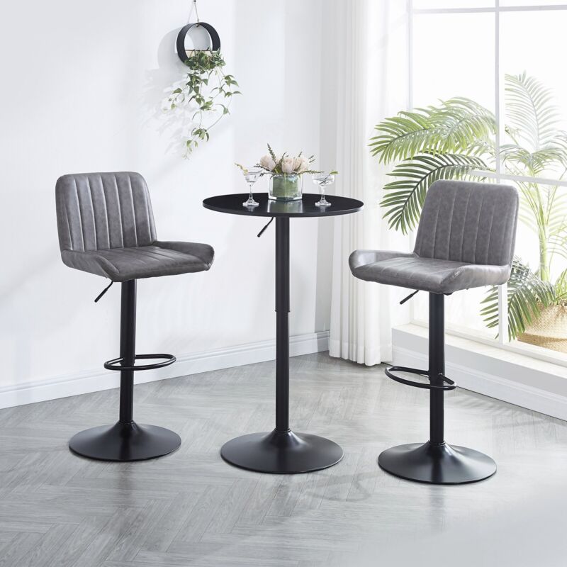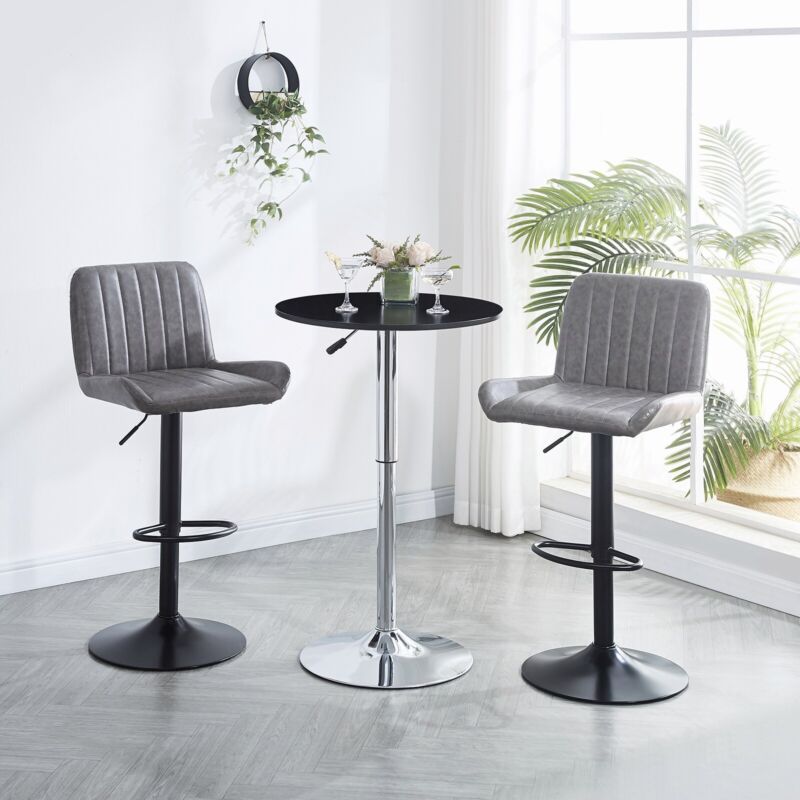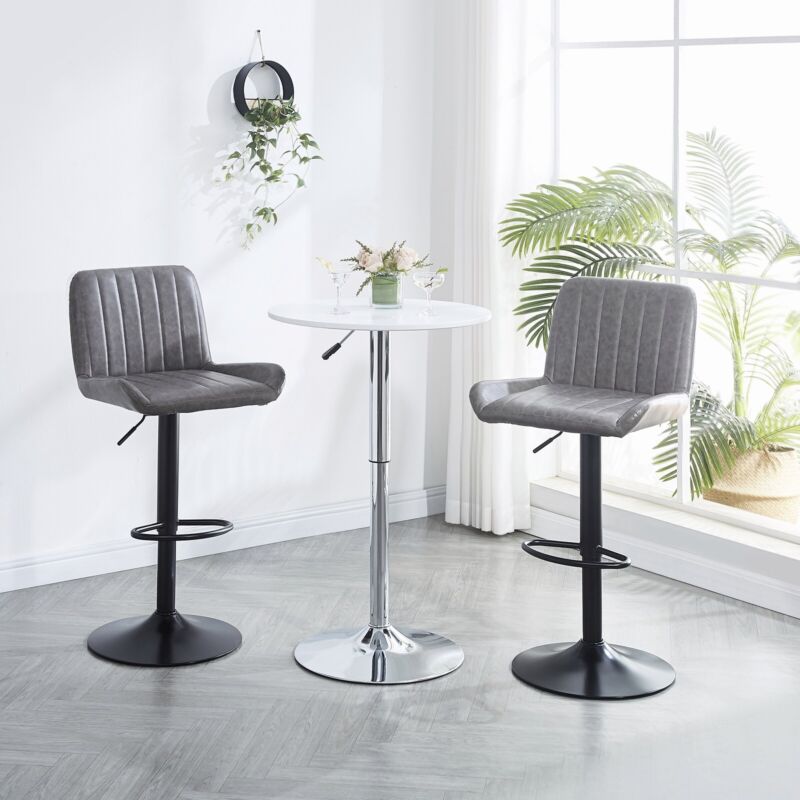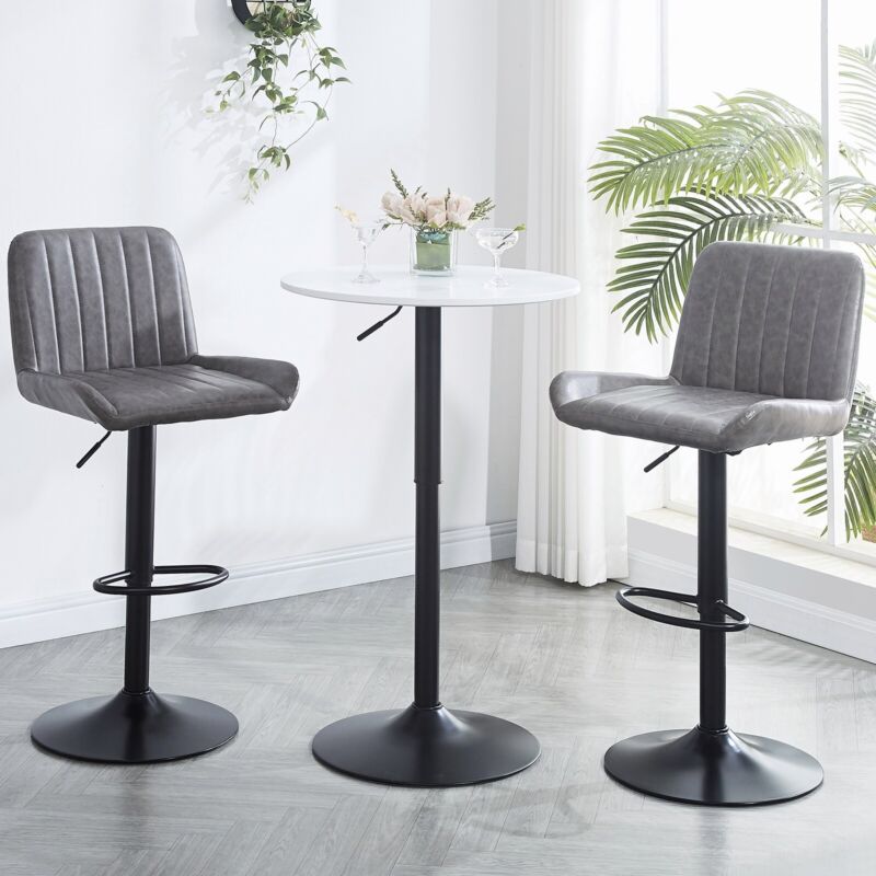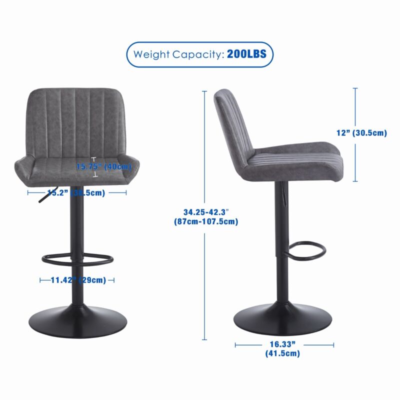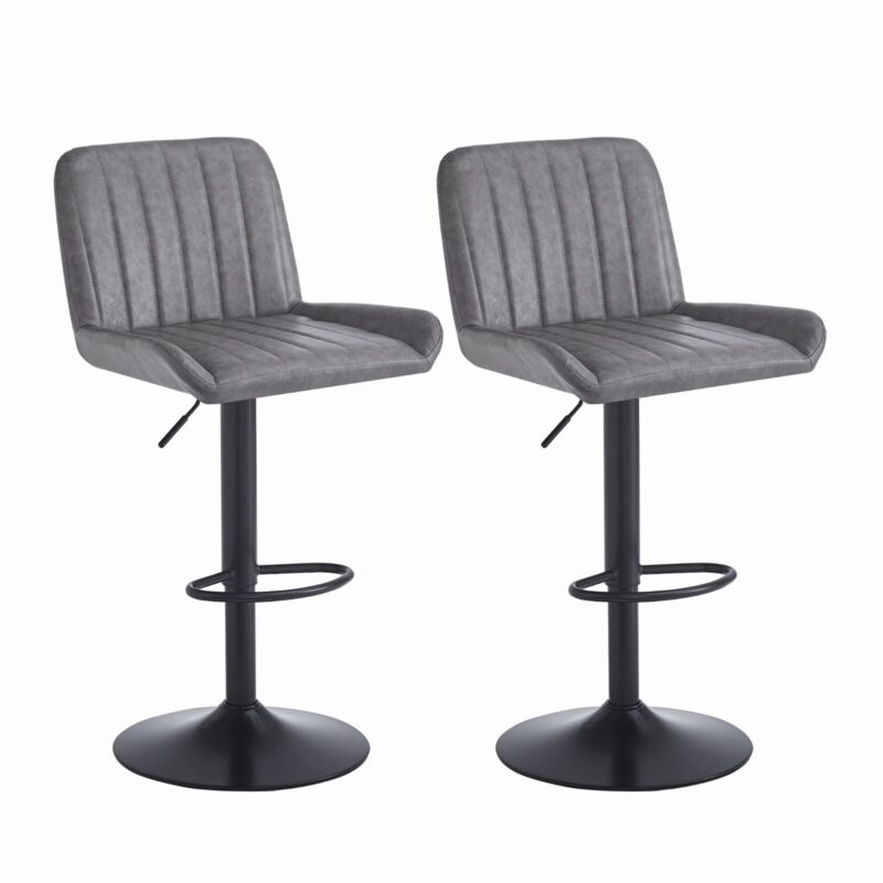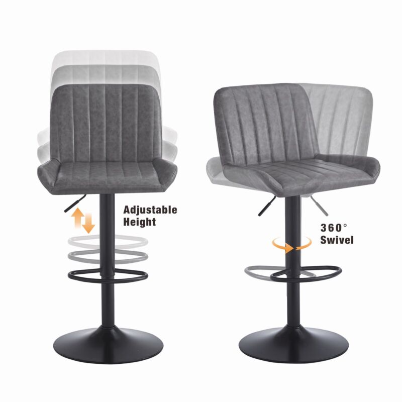 2x Gray Faux Leather Black Metal Base Swivel Bar Stool Height Adjustable Kitchen