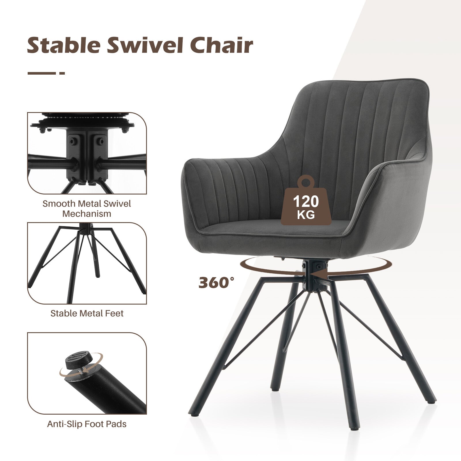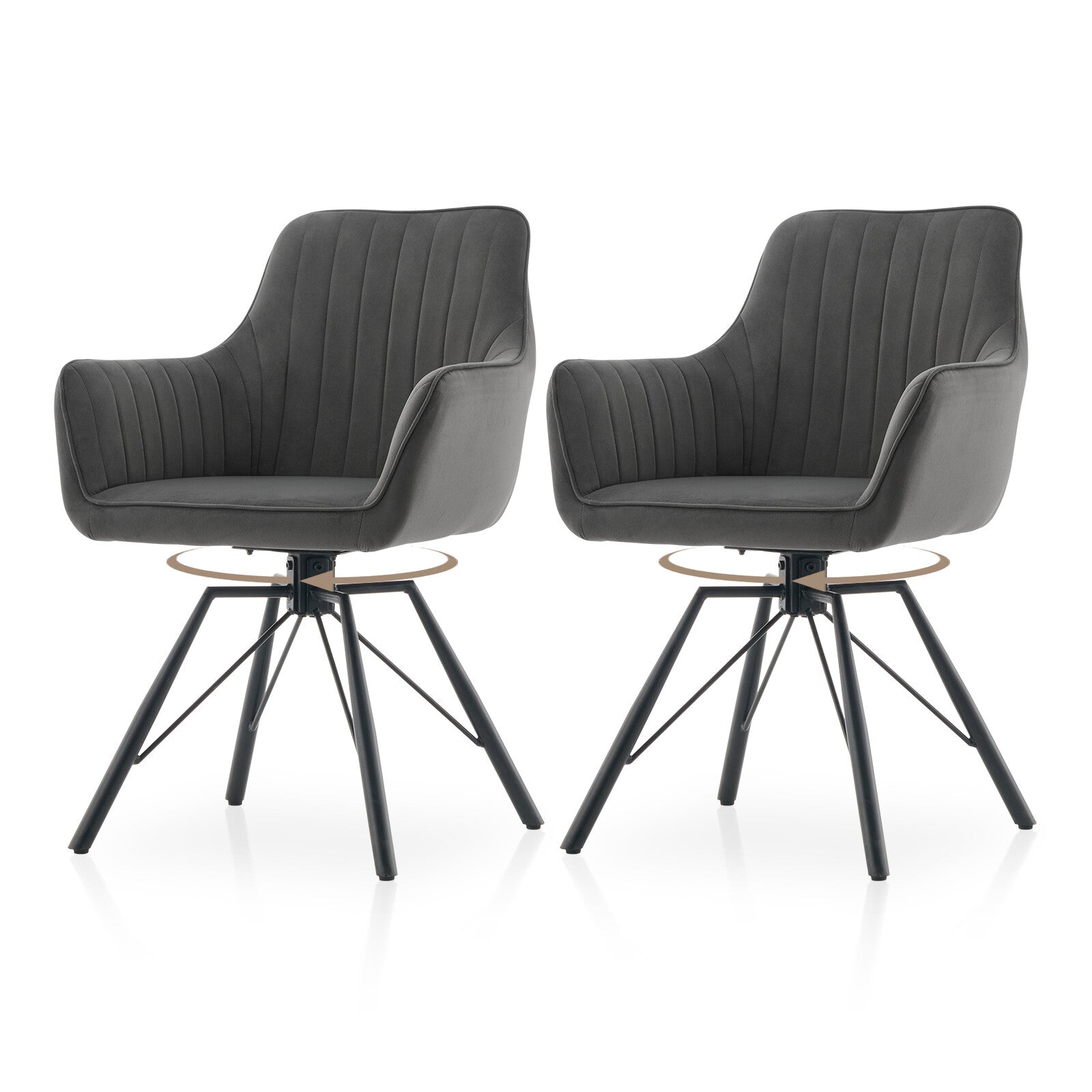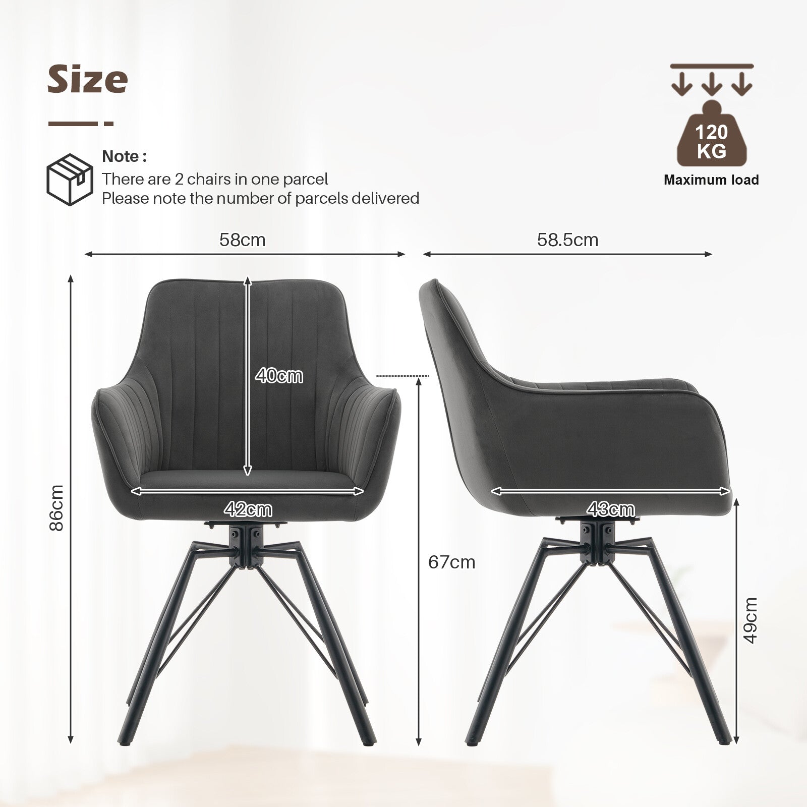 2x Grey 360° Swivel Dining Chairs Velvet Padded Seat Dining Room Chair Modern