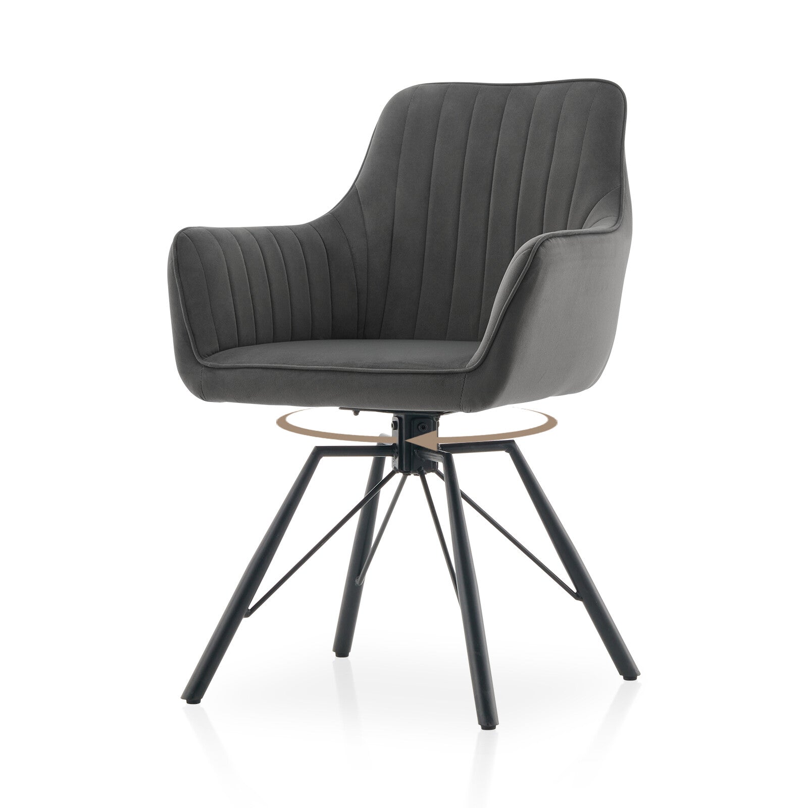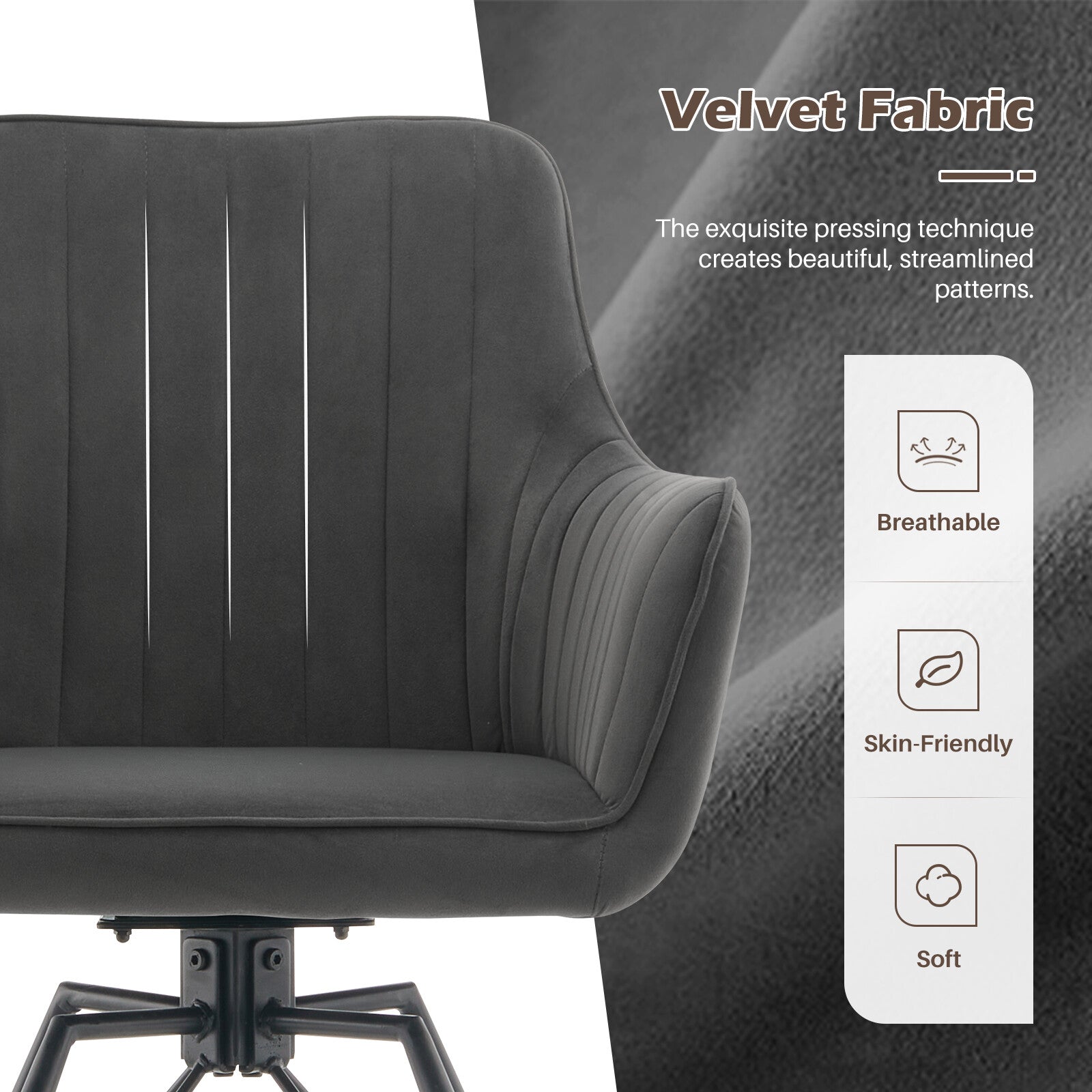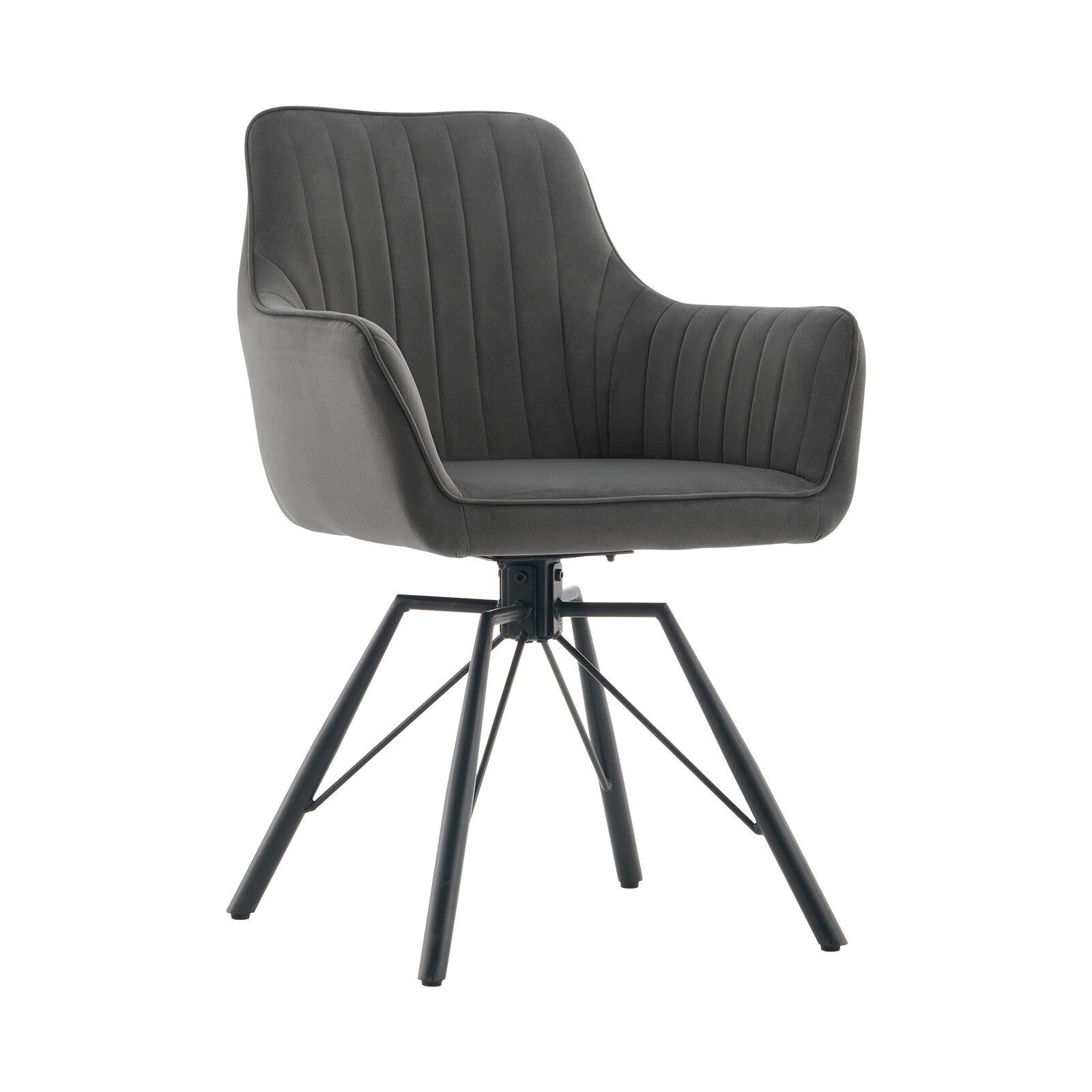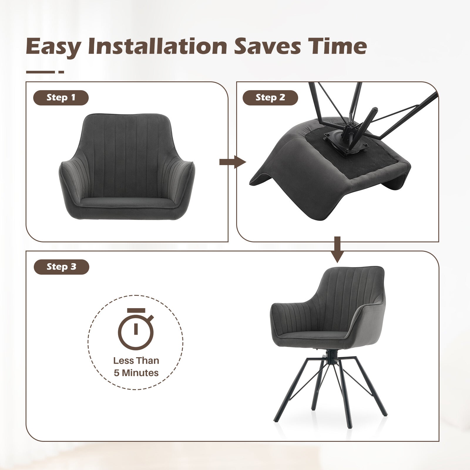 2x Grey 360° Swivel Dining Chairs Velvet Padded Seat Dining Room Chair Modern