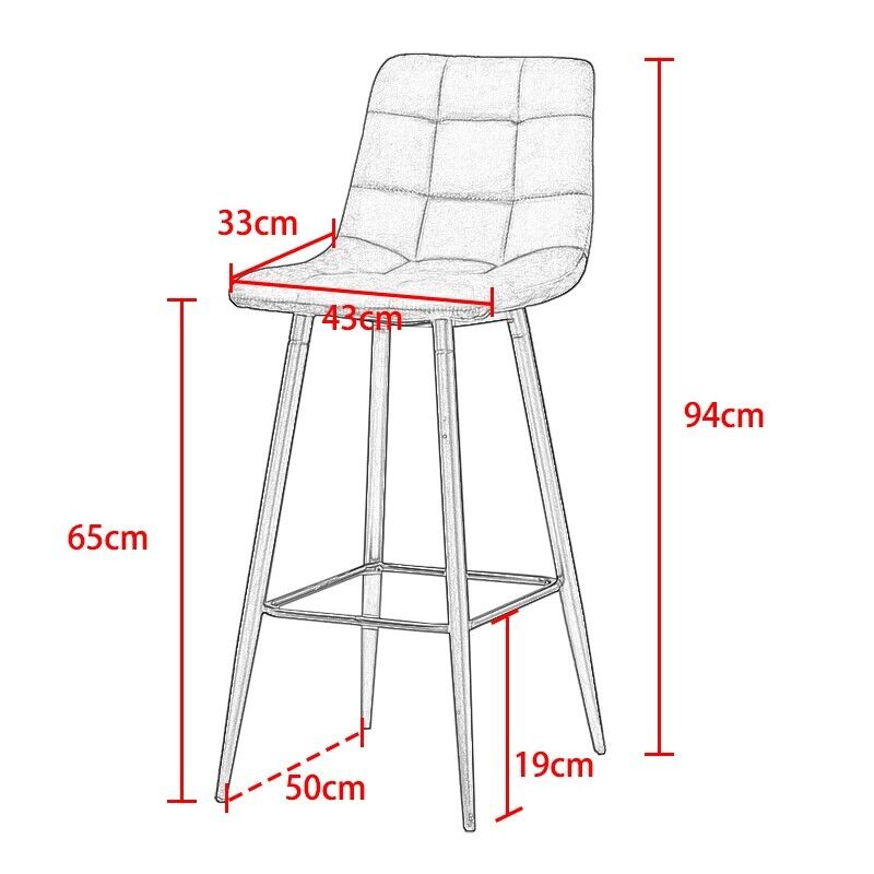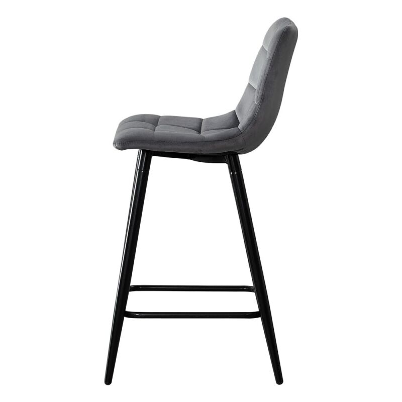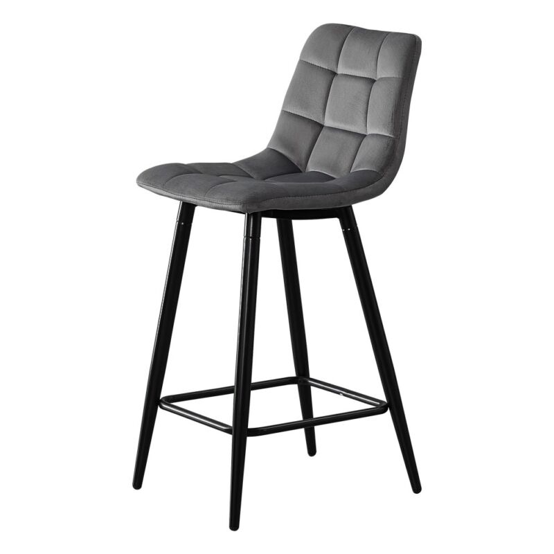 2x Grey Breakfast stool Bar Stools Velvet Pub Chairs 65 cm high seat Modern