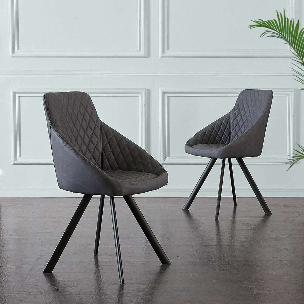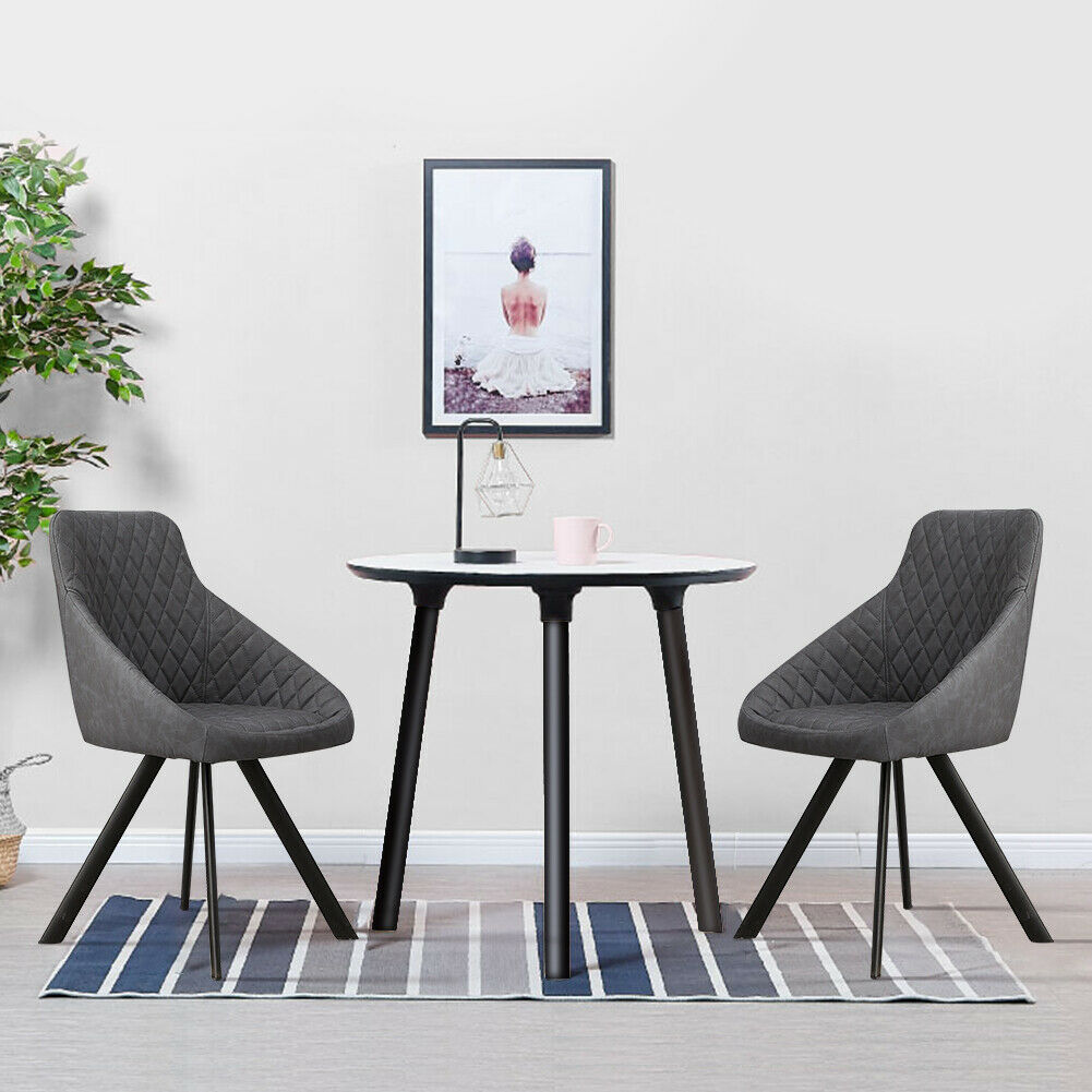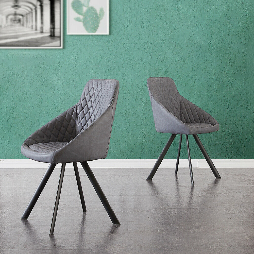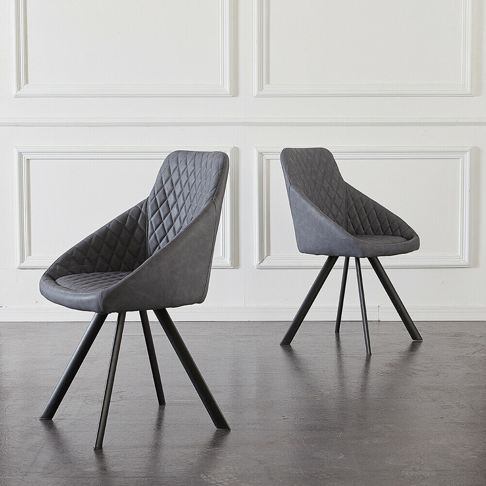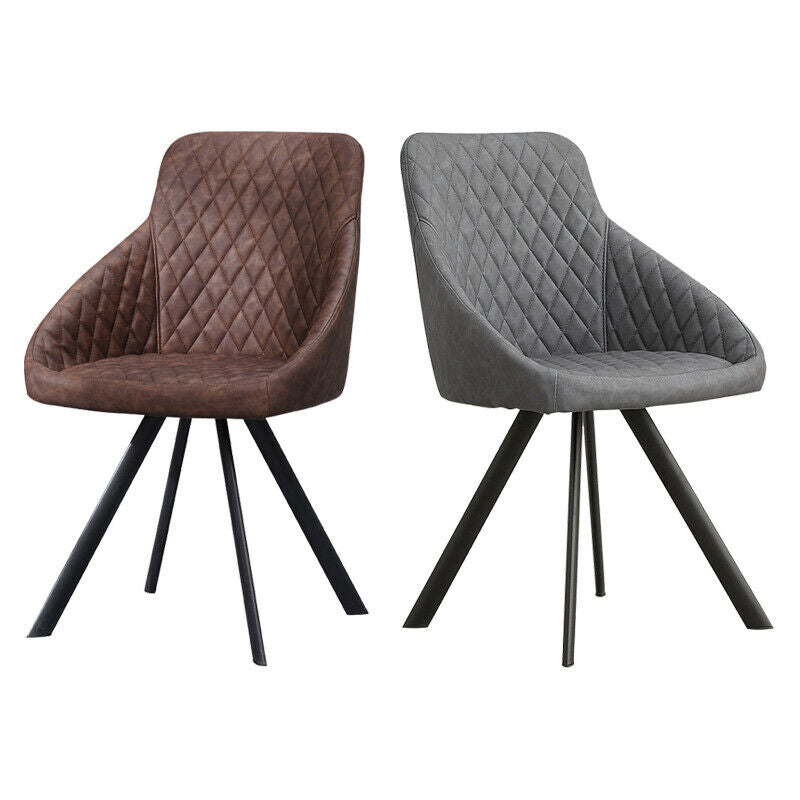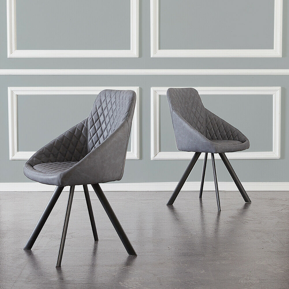 2x Grey&Brown Dining Chairs Set PU Faux Leather Padded Metal Legs Accent Chair