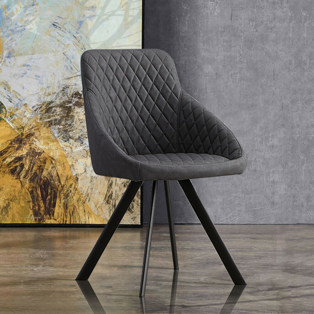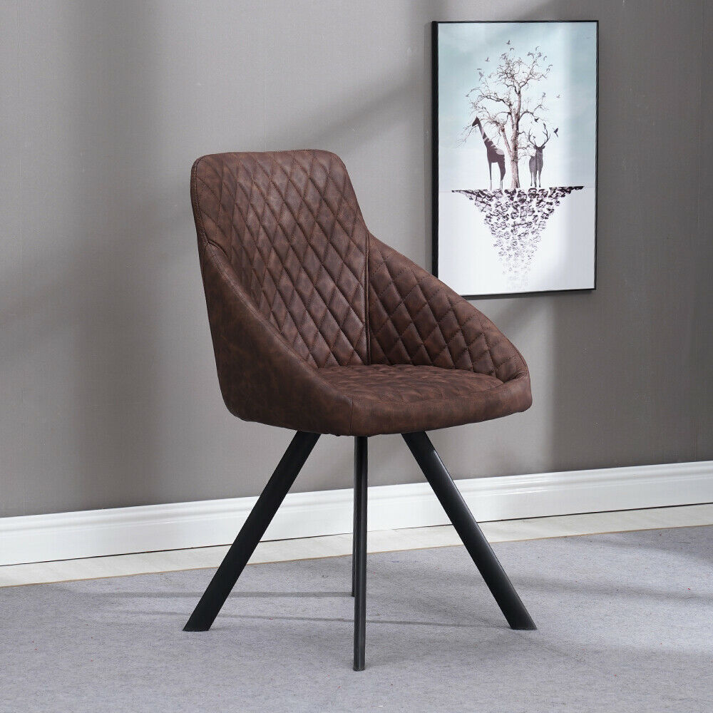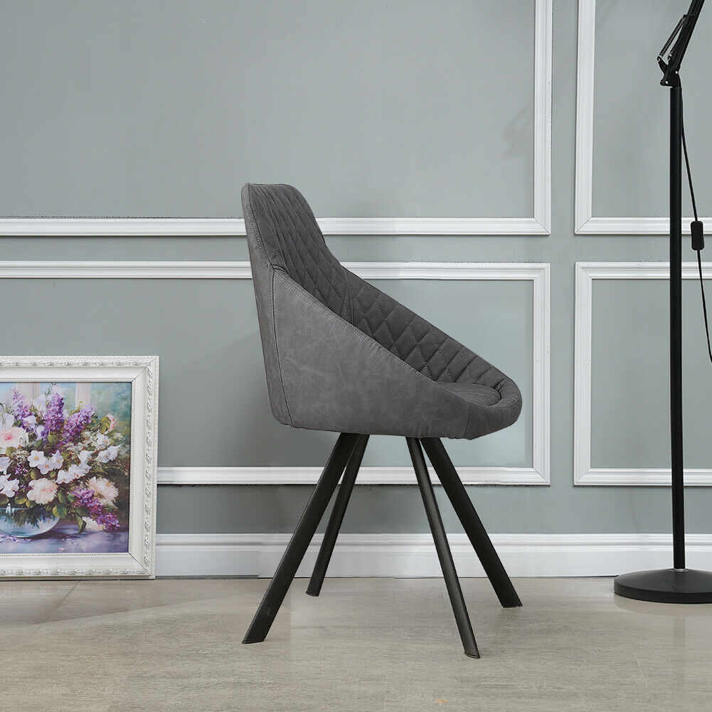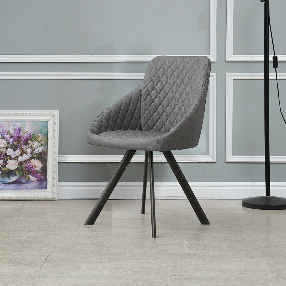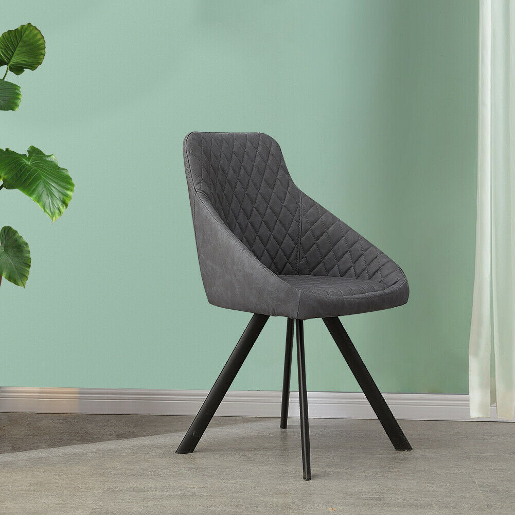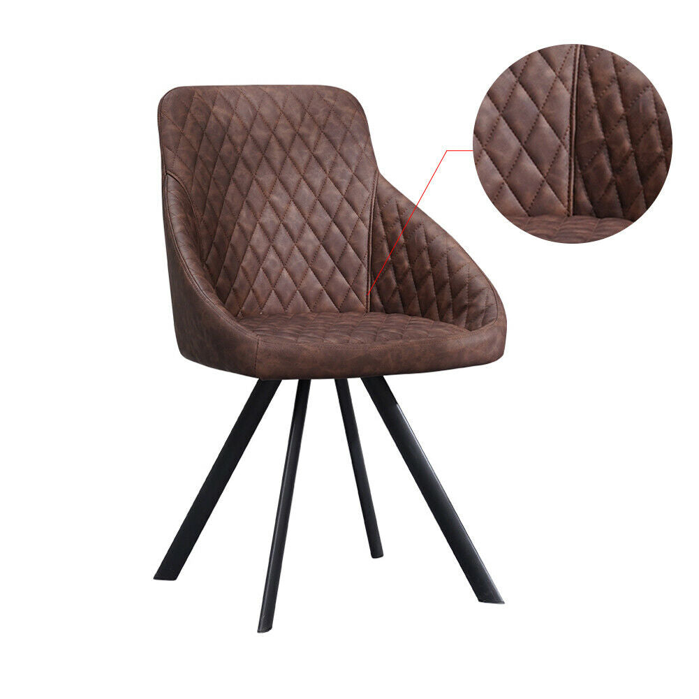 2x Grey&Brown Dining Chairs Set PU Faux Leather Padded Metal Legs Accent Chair