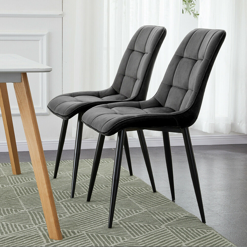2x Grey Chairs Velvet Dining Kitchen Chairs Office Stools Restaurant Modern UK