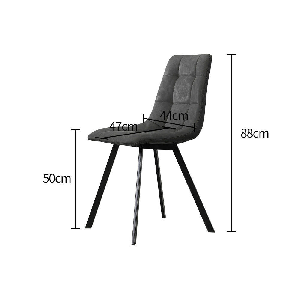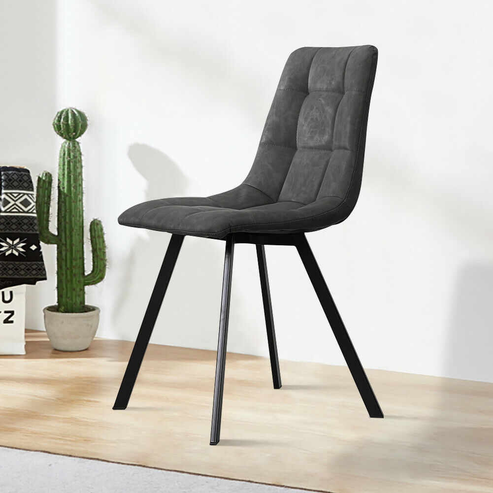 2x Grey Dining Chairs Set PU Leather Padded Seat Black Metal Leg Kitchen
