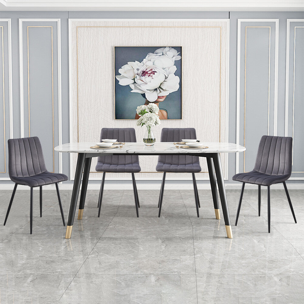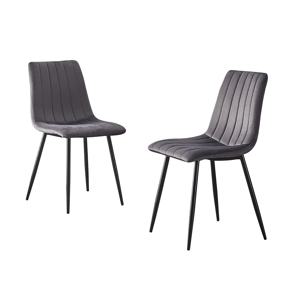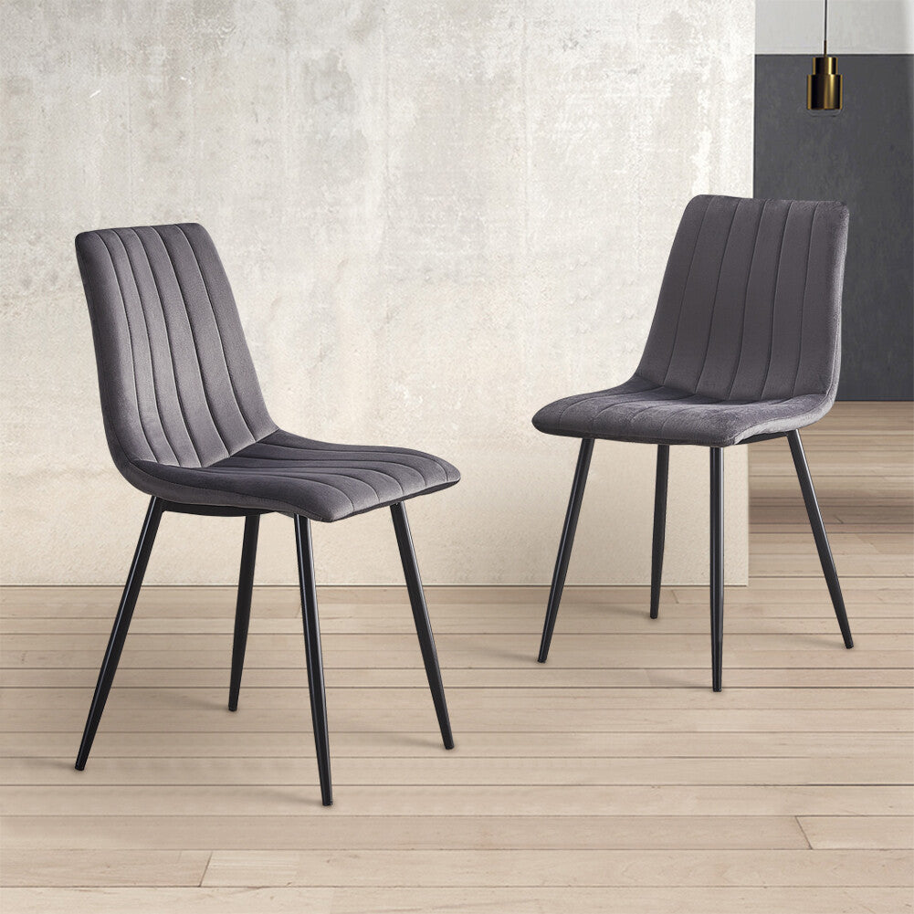 2x Grey Dining Chairs Velvet Padded Seat Kitchen Dining Room Chair Modern