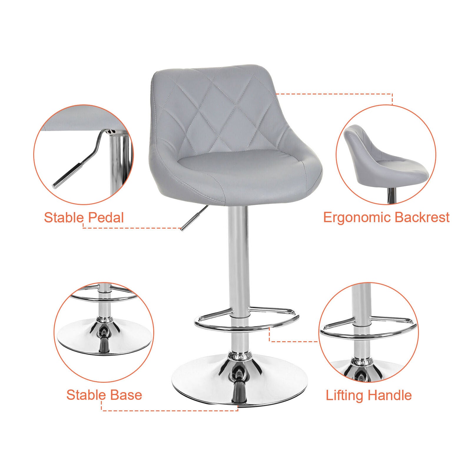 2X GREY EATHER BARSTOOLS GAS LIFT BAR STOOL BREAKFAST KITCHEN