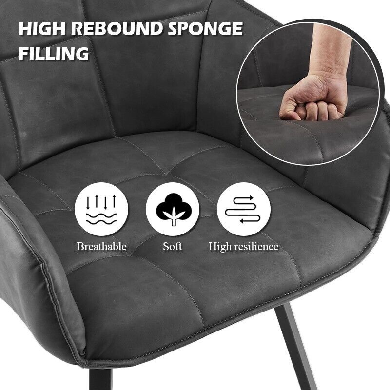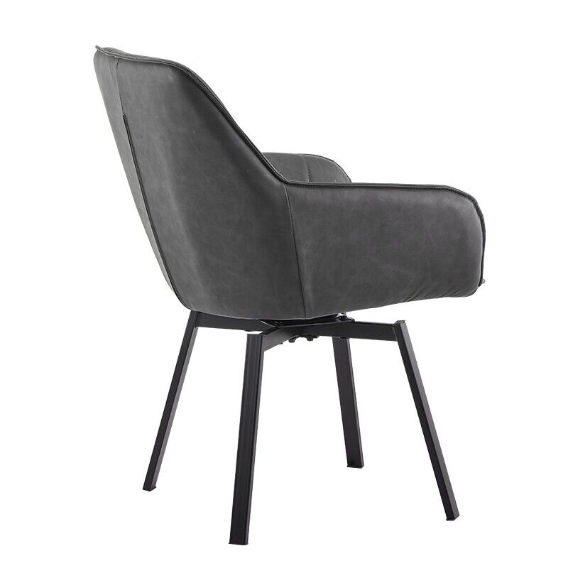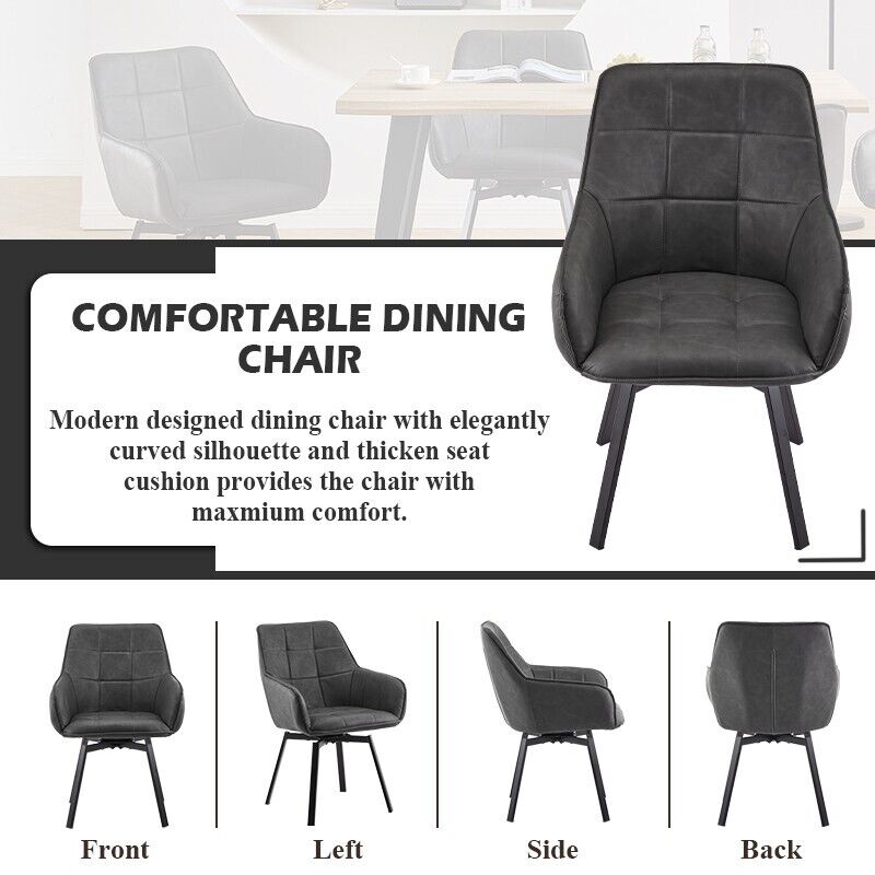 2x Grey Swivel Dining Chairs Faux Leather Padded Seat Dining Room Chair Modern
