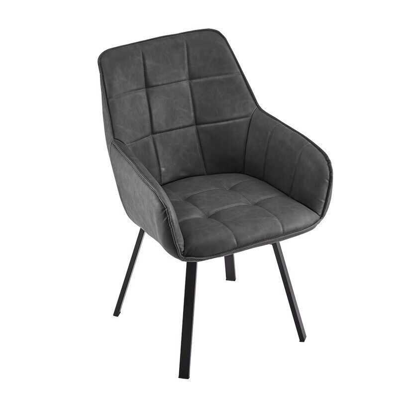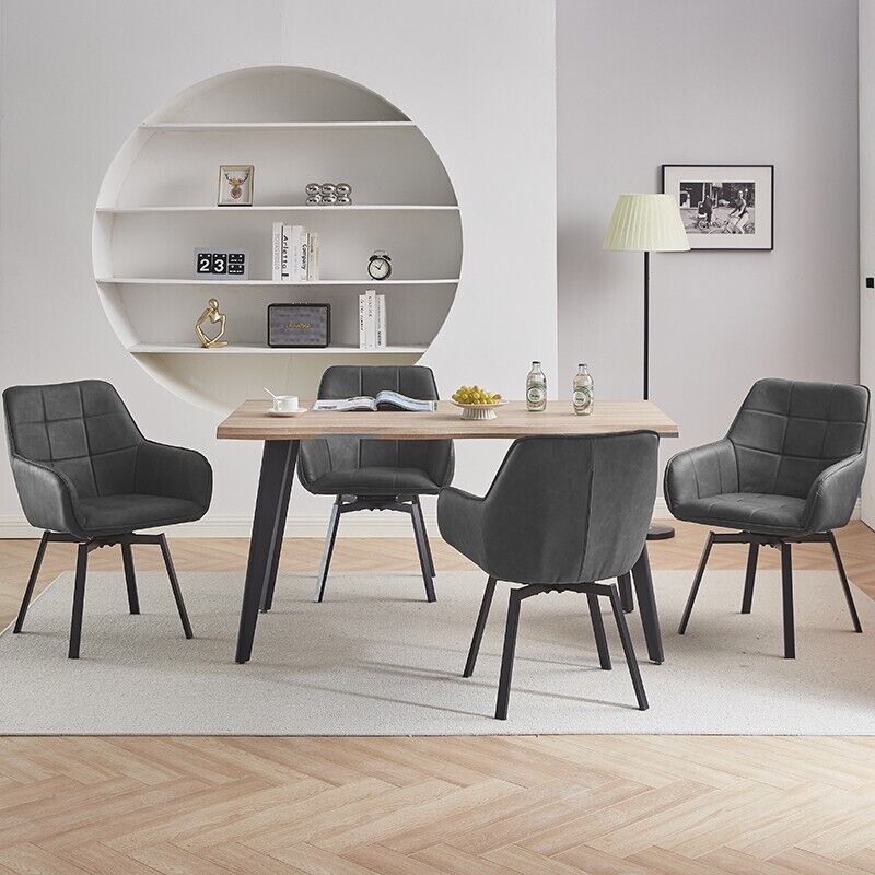 2x Grey Swivel Dining Chairs Faux Leather Padded Seat Dining Room Chair Modern