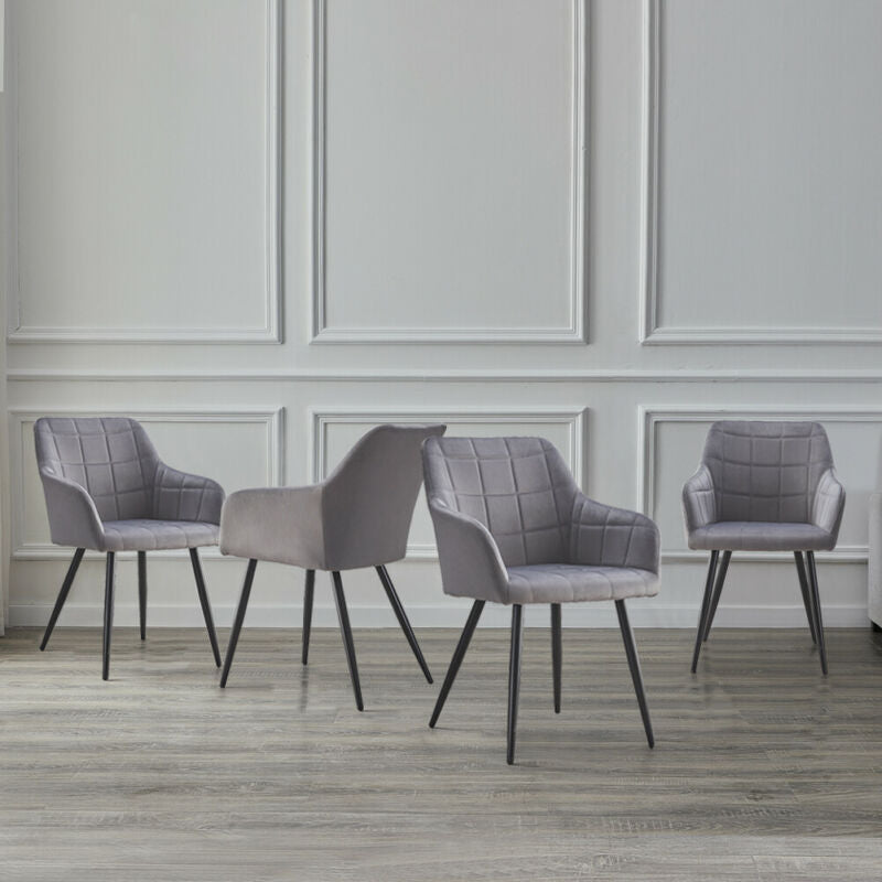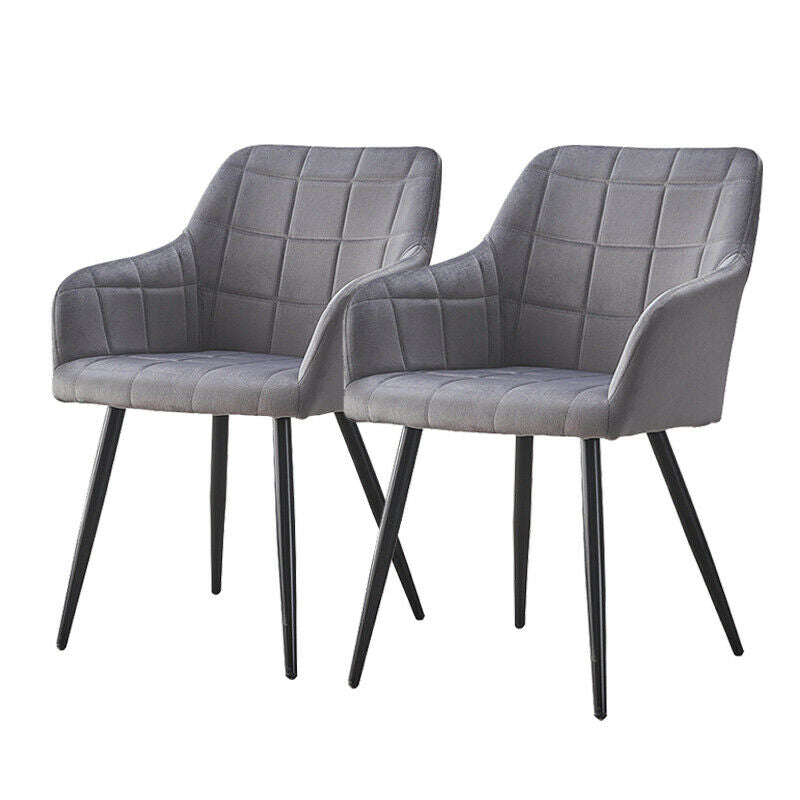 2X Grey Velvet Dining Chairs Armchairs Kitchen Dining Room Chair Padded Seat