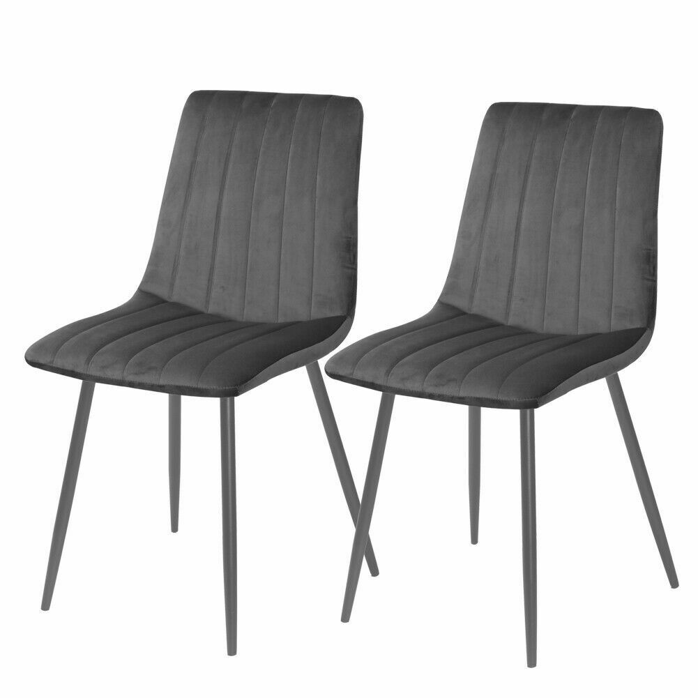 2X Grey Velvet Dining Chairs Metal Legs Office Chairs Dining Room Kitchen Modern