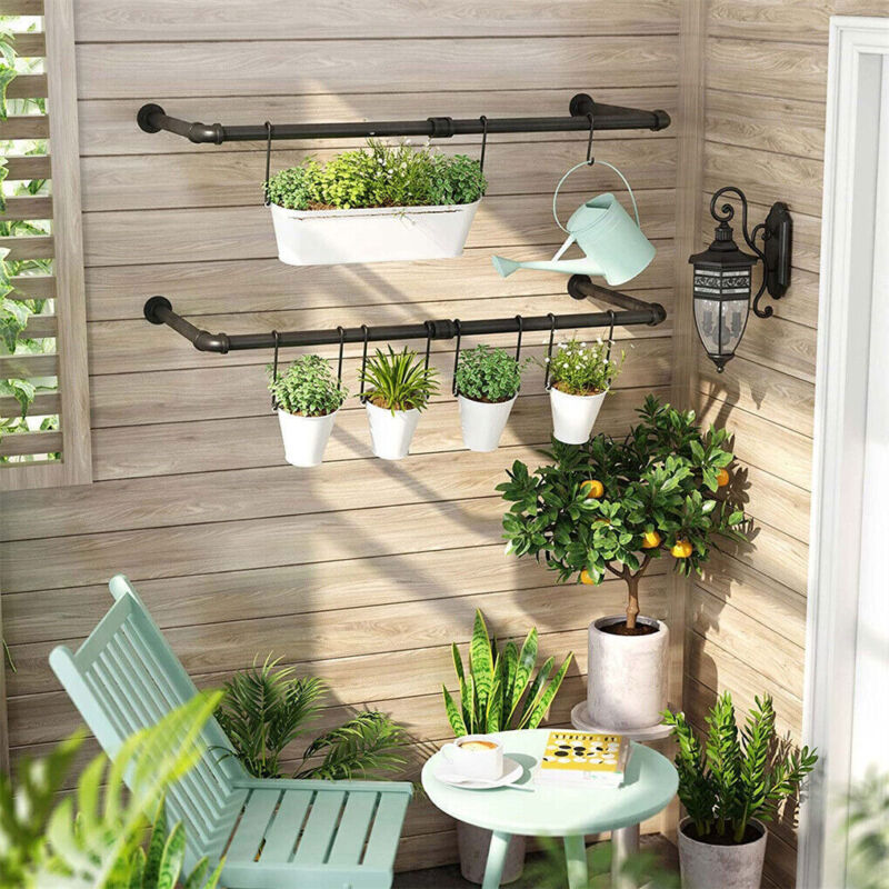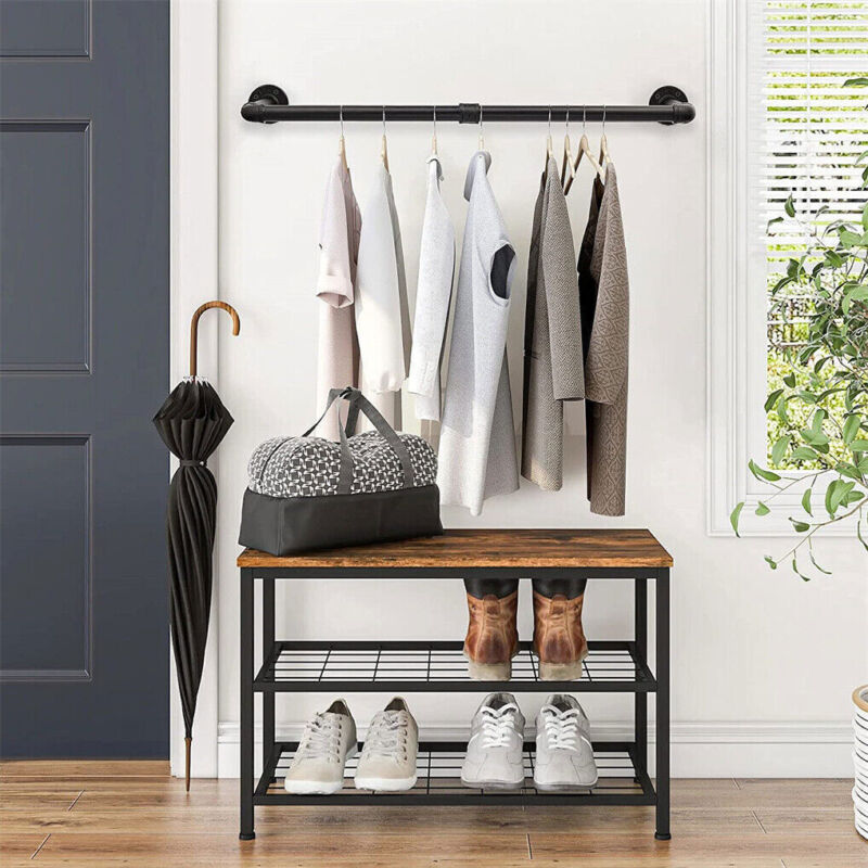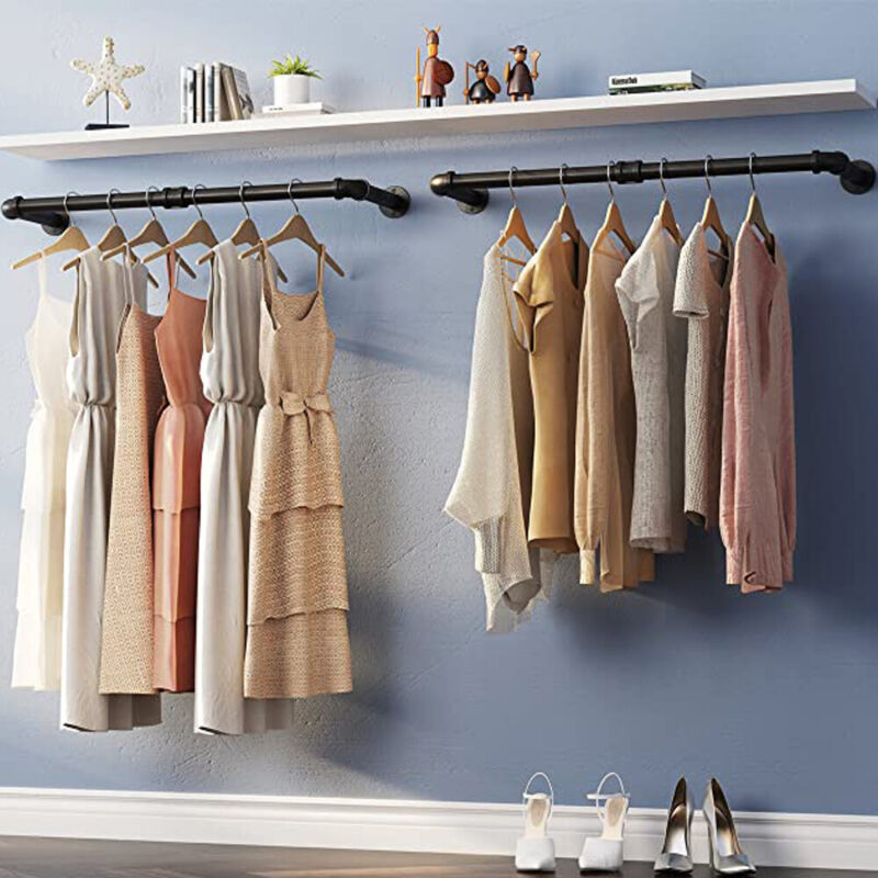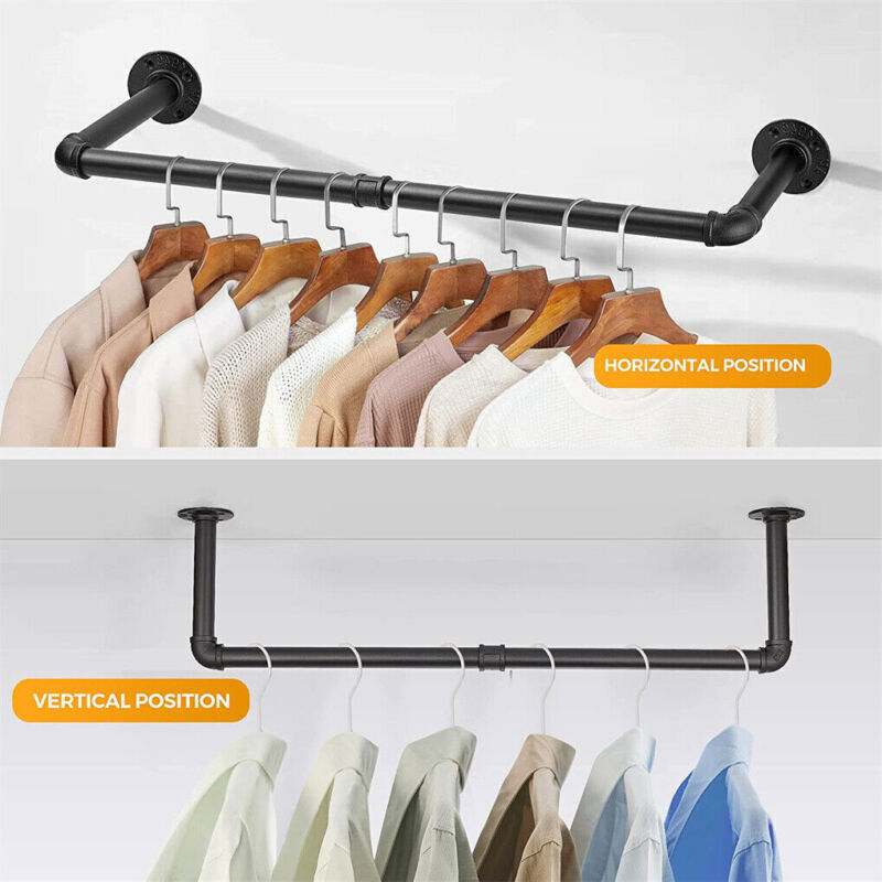2x Industrial Pipe Clothes Rack Wall Mounted Hooks Door Entrance Retail Boutique