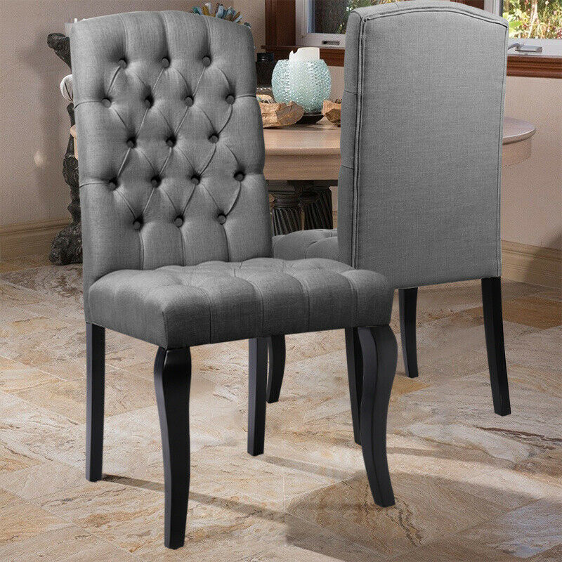 2x Luxury Button Fabric Dining Chairs High Back Chesterfield Style Oak Wood Legs