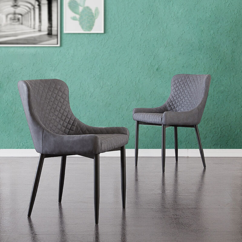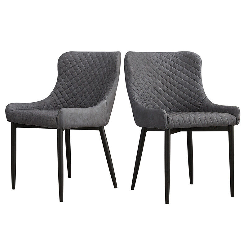 2x Luxury Dining Chair PU Faux Leather Metal Legs Grey Restaurant Kitchen Chairs