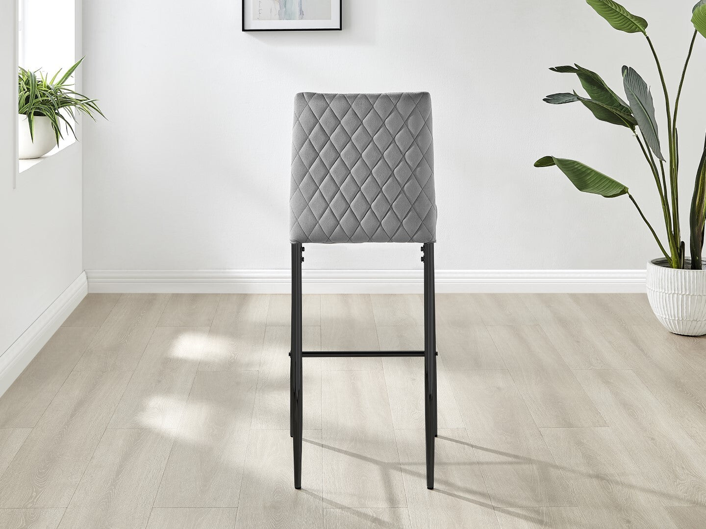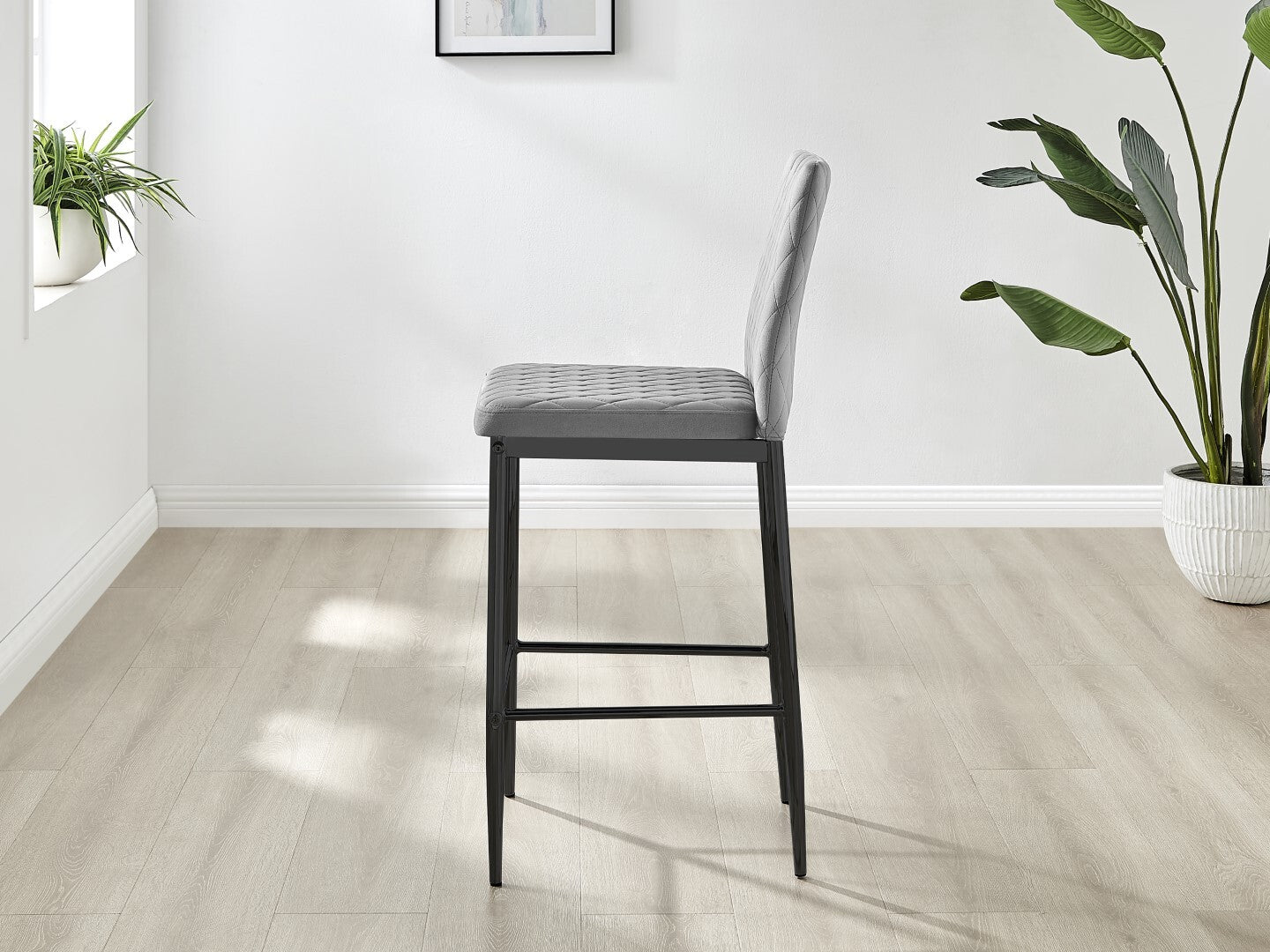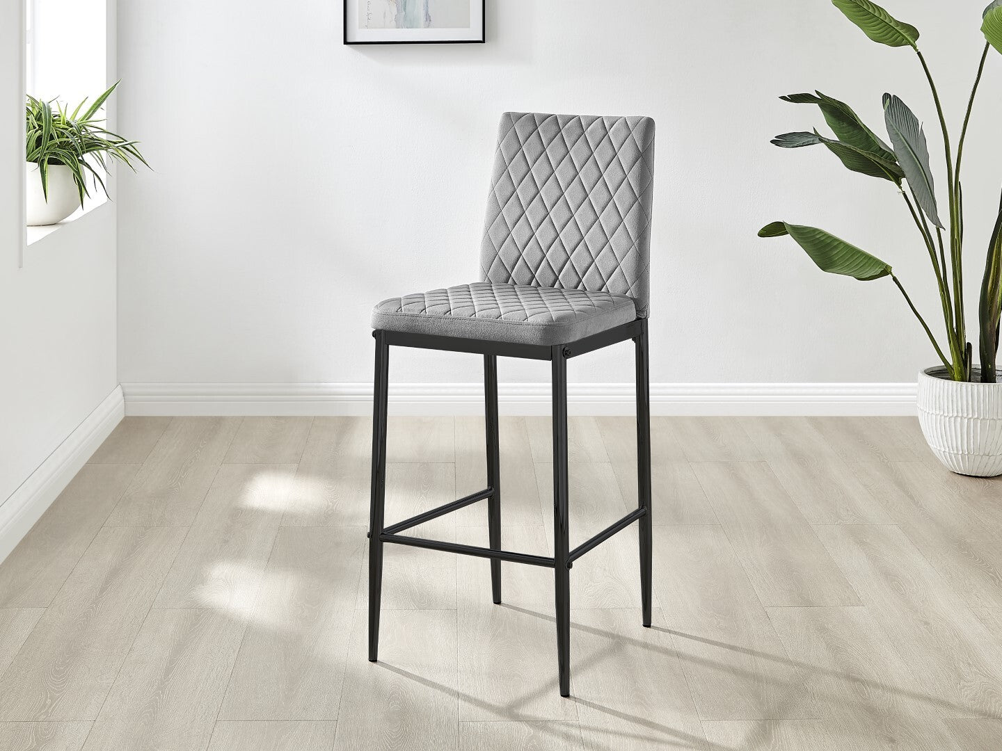 2x Milan Diamond Pattern Faux Leather Grey Bar Stools With Black Legs Set of 2