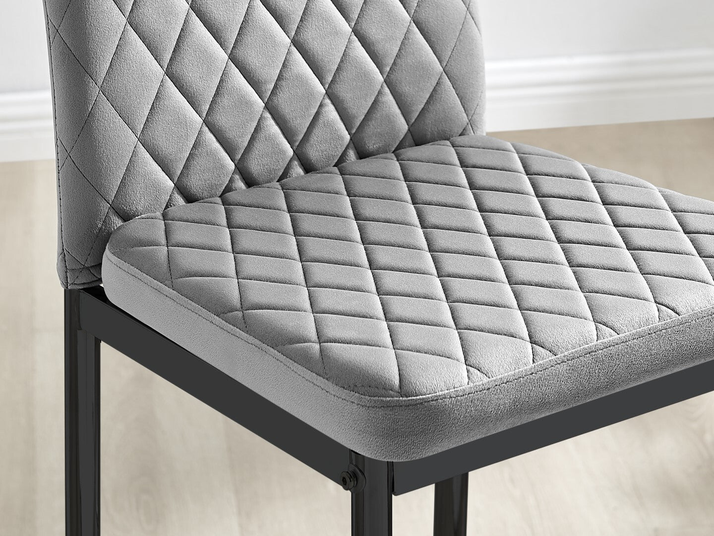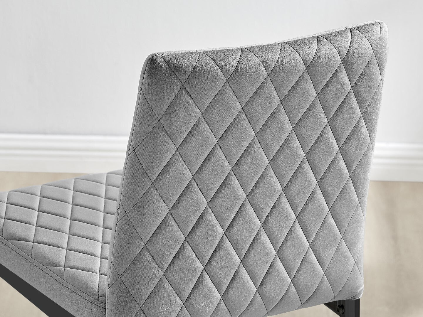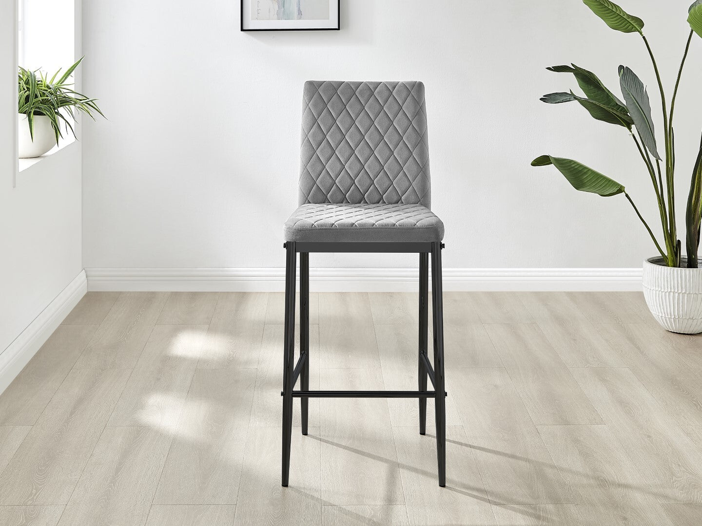 2x Milan Diamond Pattern Faux Leather Grey Bar Stools With Black Legs Set of 2