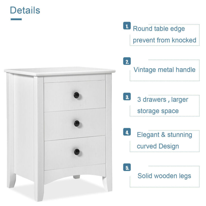 2x Modern Chests of Drawers Bedside Table Cabinet 3 Drawers Bedroom Storage Wood