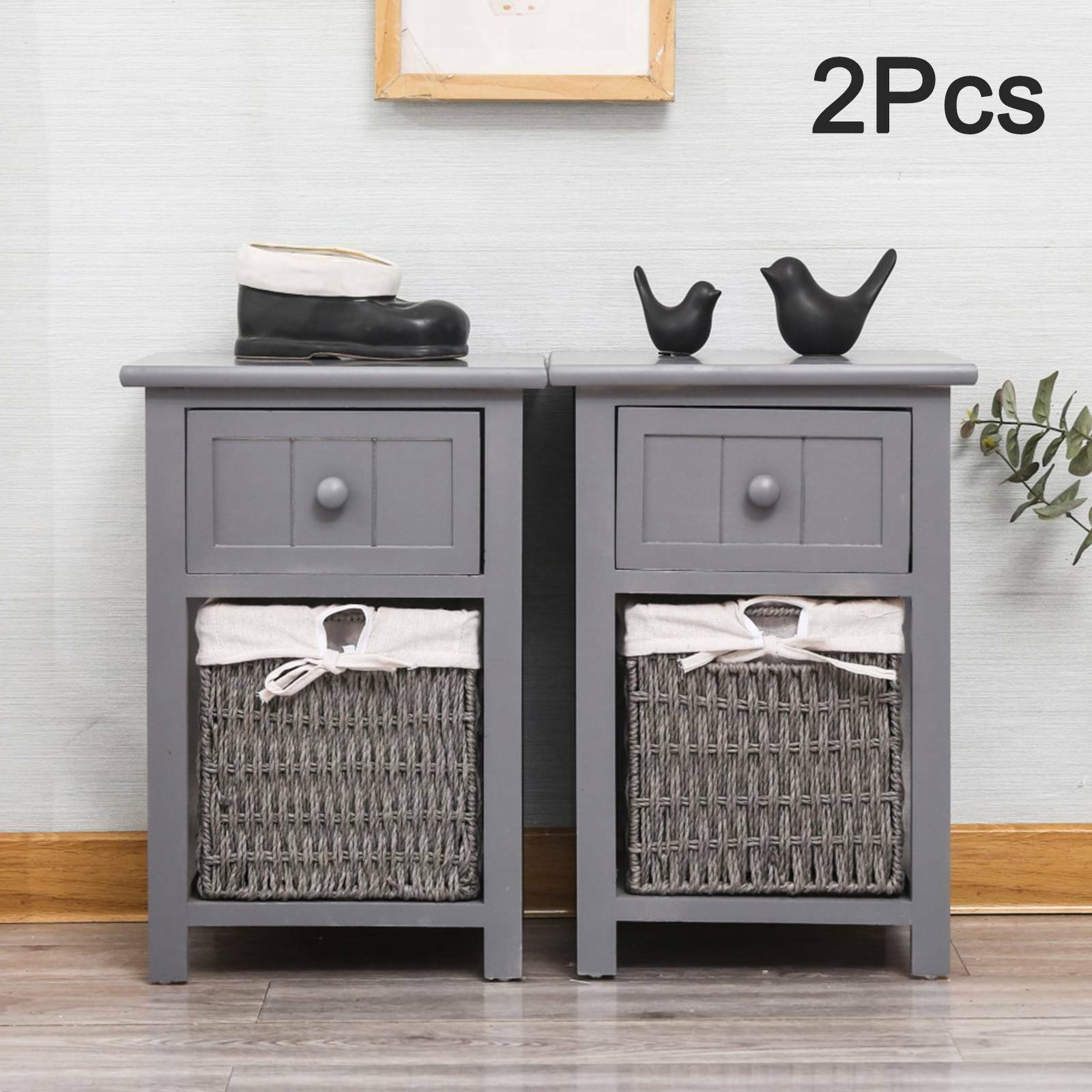 2x Modern Chic gery Bedside Tables Small fresh Storage Wicker Basket