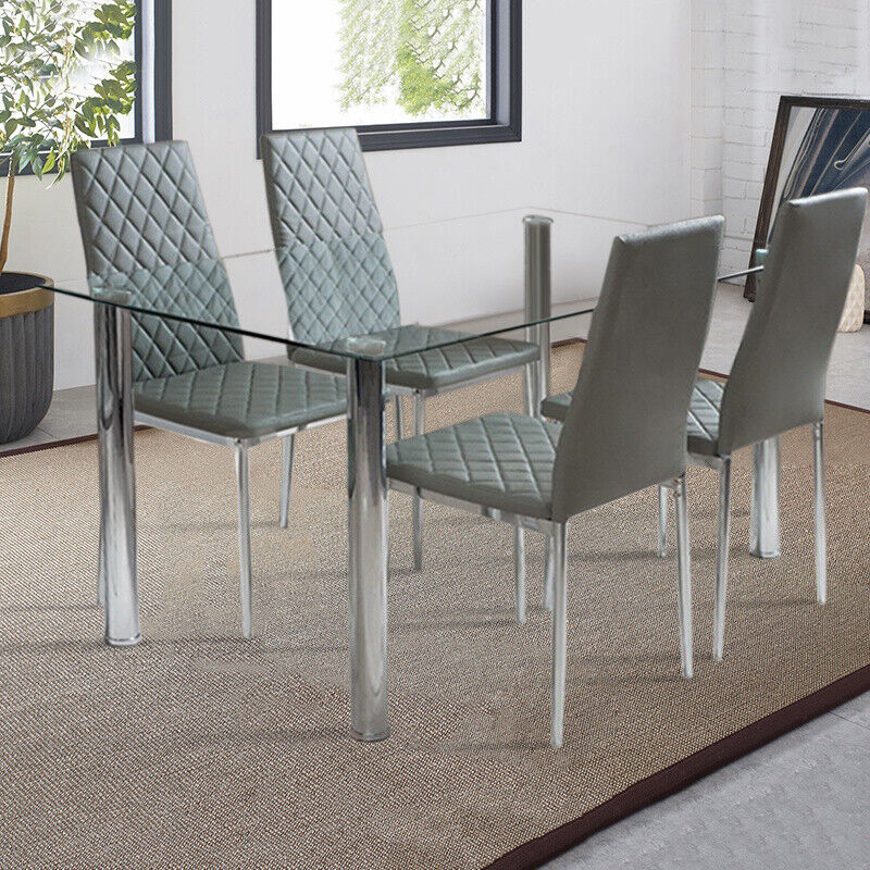 2x Modern Faux Leather Dining Chairs Metal Legs Home Kitchen Dinner Padded Seat