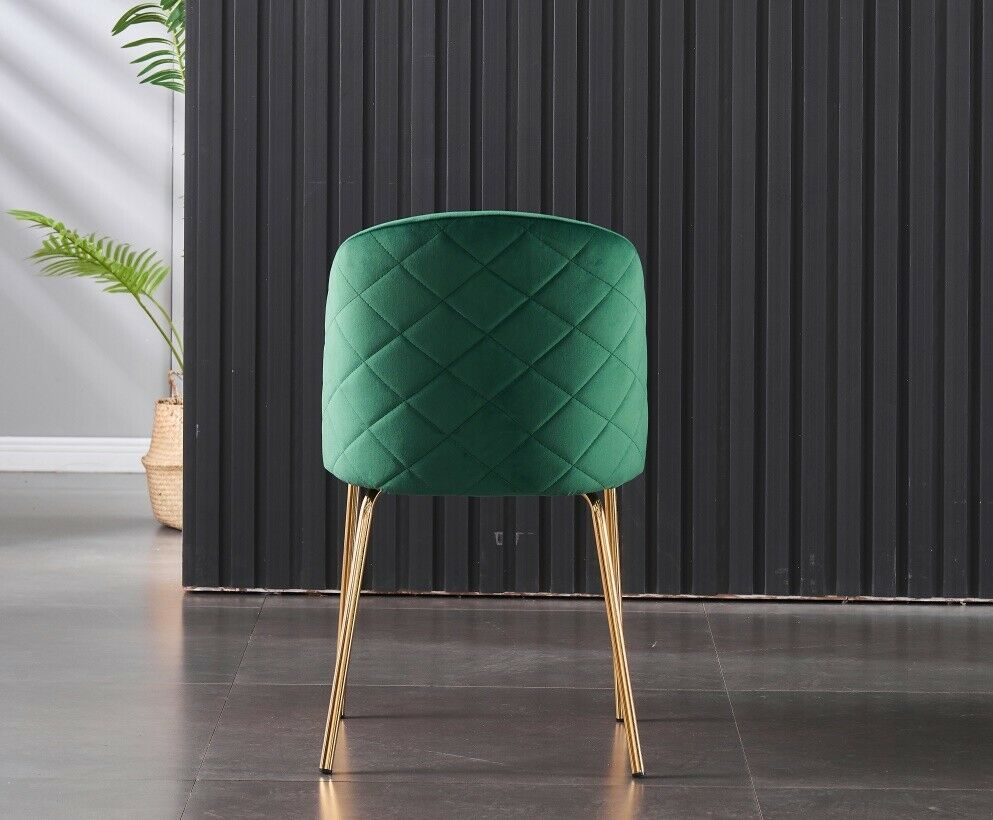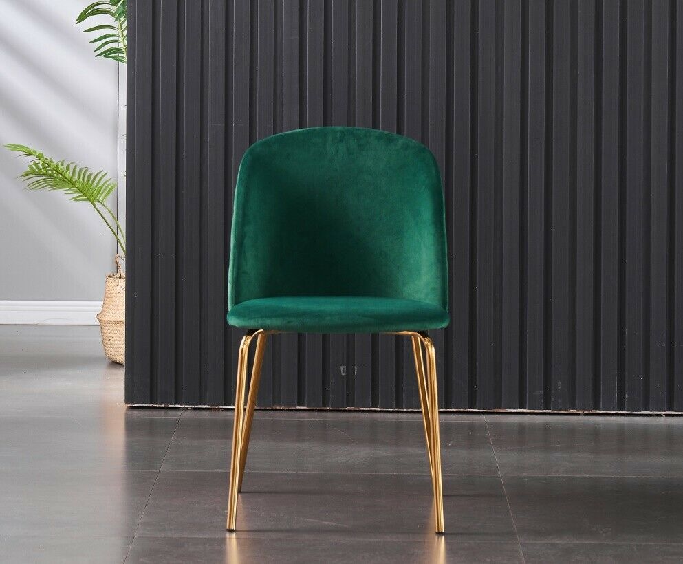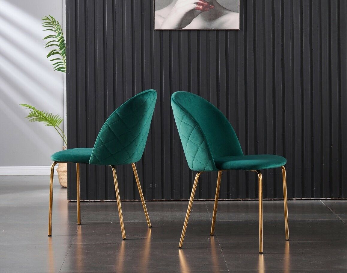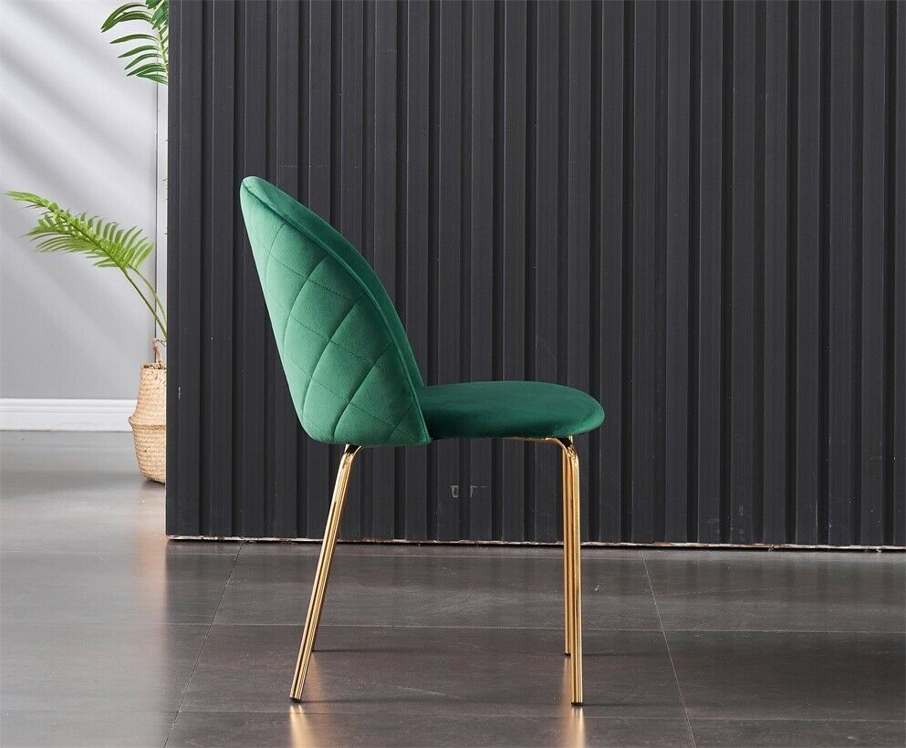 2X Morden Velvet Fabric Dining Chairs Metal Brass Legs Kitchen Padded Seat Green