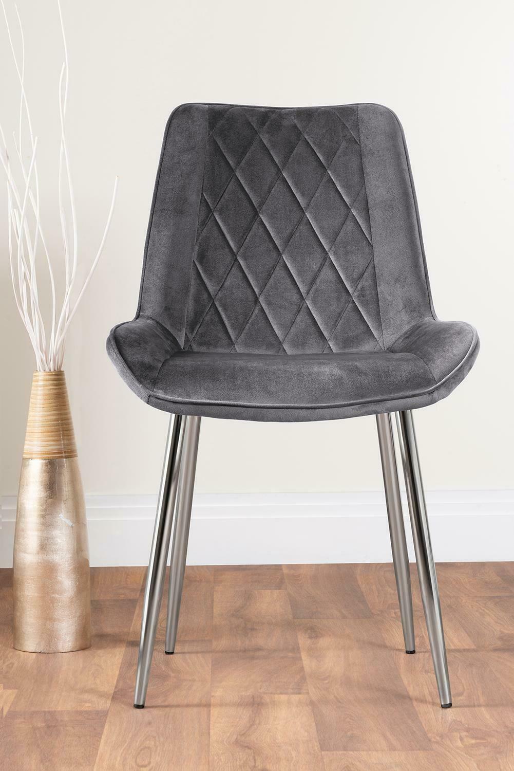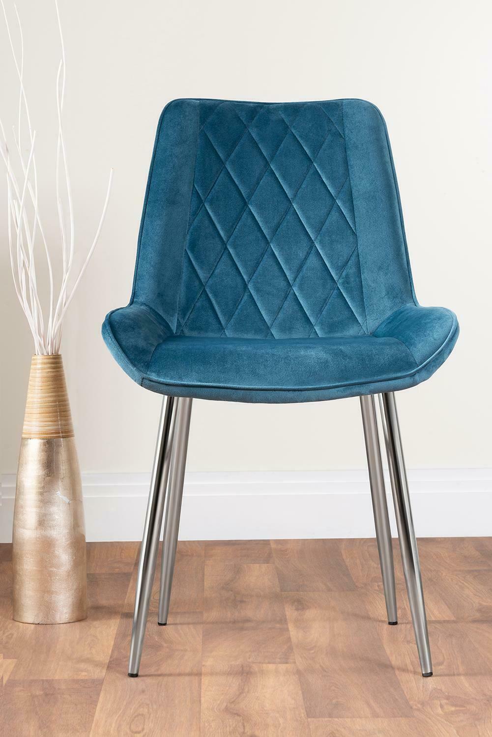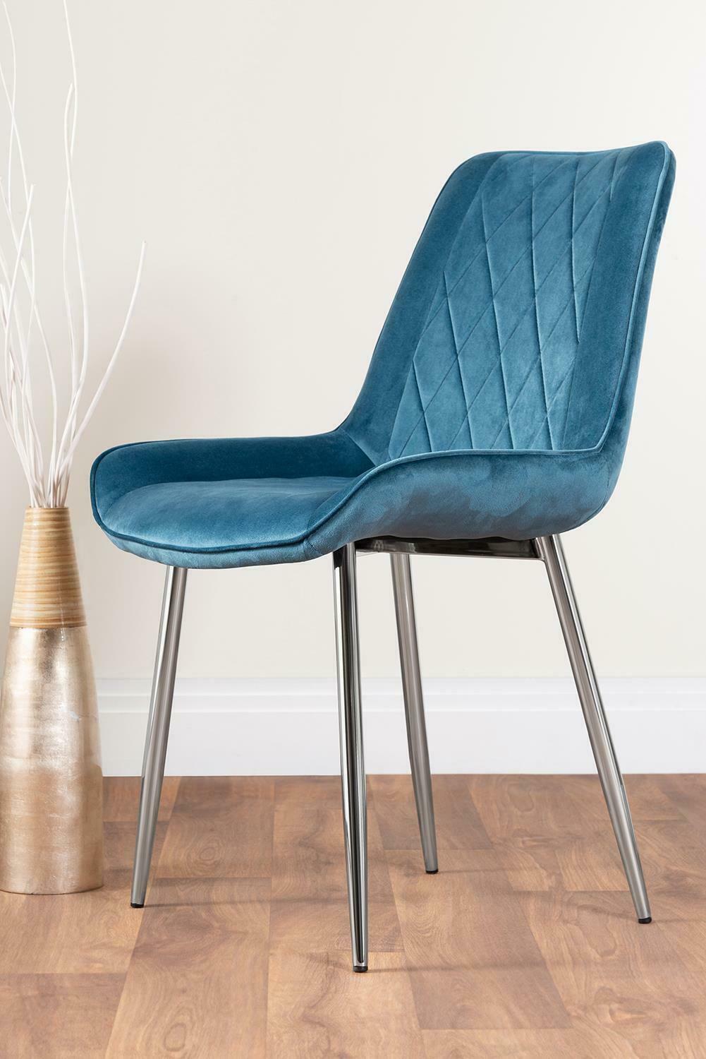 2x Pesaro Chrome Leg Modern Velvet Dining Chairs - Returned