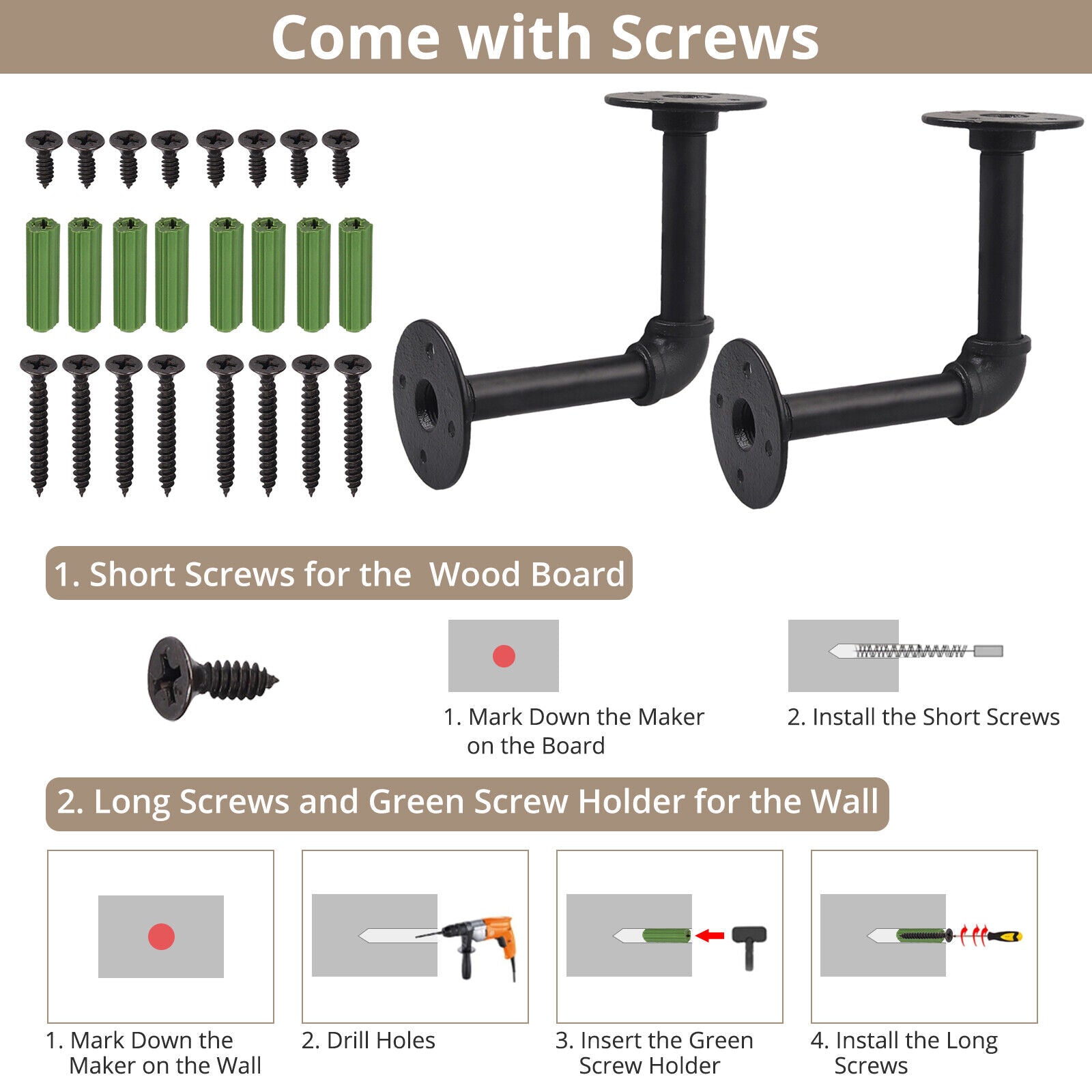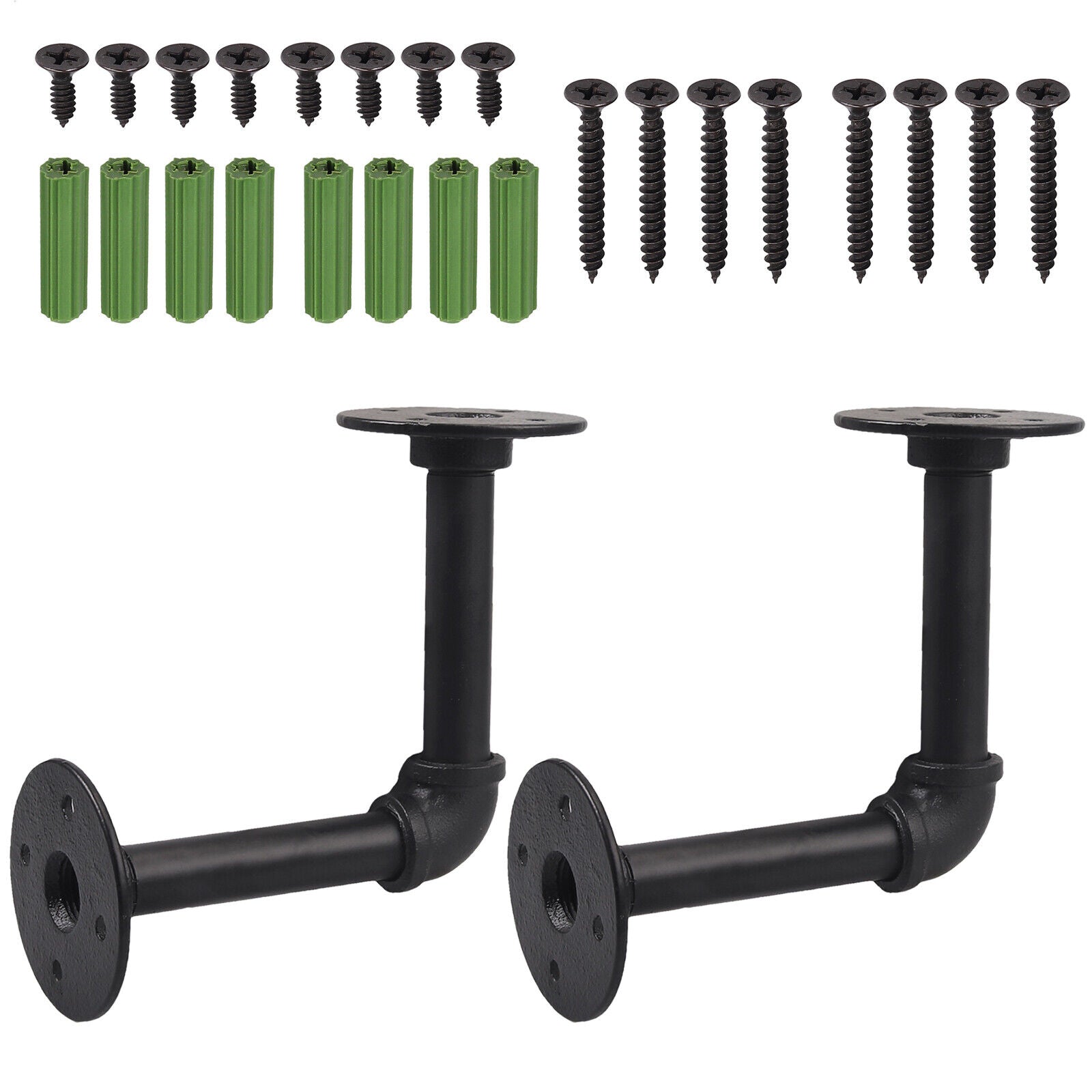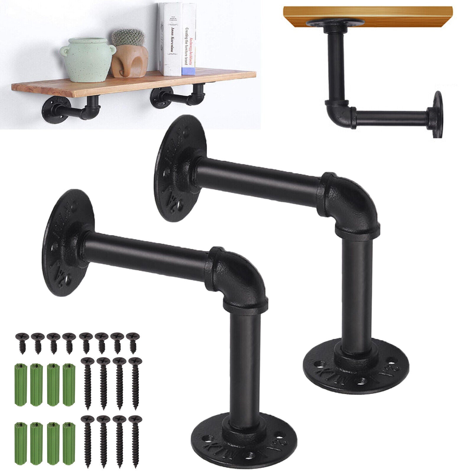 2X Pipe Shelf Brackets Industrial Rustic Wall Floating Shelves Support Tube Rack