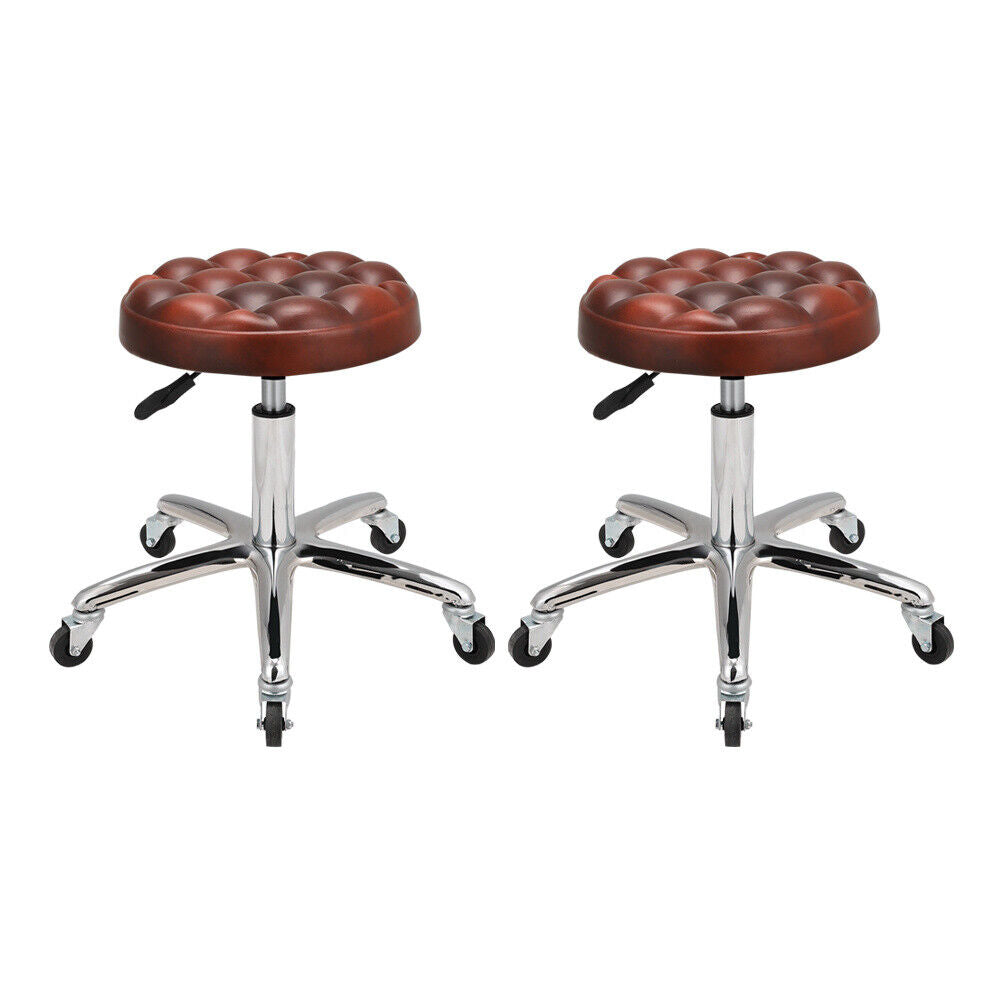 2x PU Leather Padded Barber Stools Rolling Swivel Salon Spa Hairdresser Chair