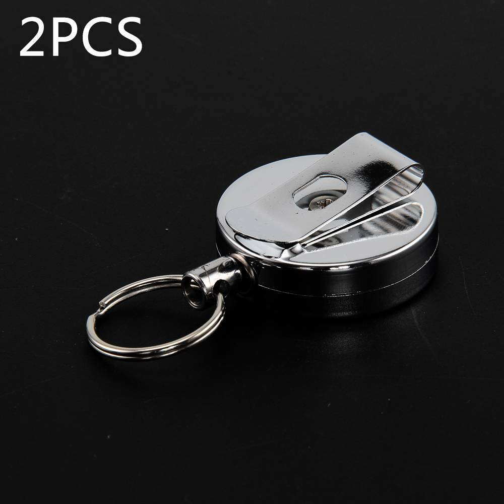 2X Recoil Extendable Metal Wire 65cm Key Chain Ring Clip Pull Keyring Retracting
