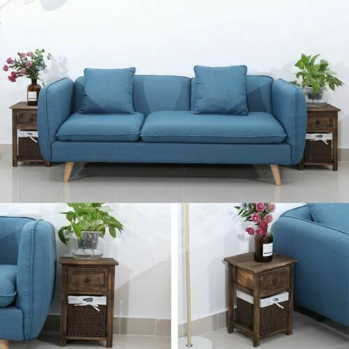 2x Retro Rustic Bedside Cabinet Industrial Nightstand Side Table Storage Drawer
