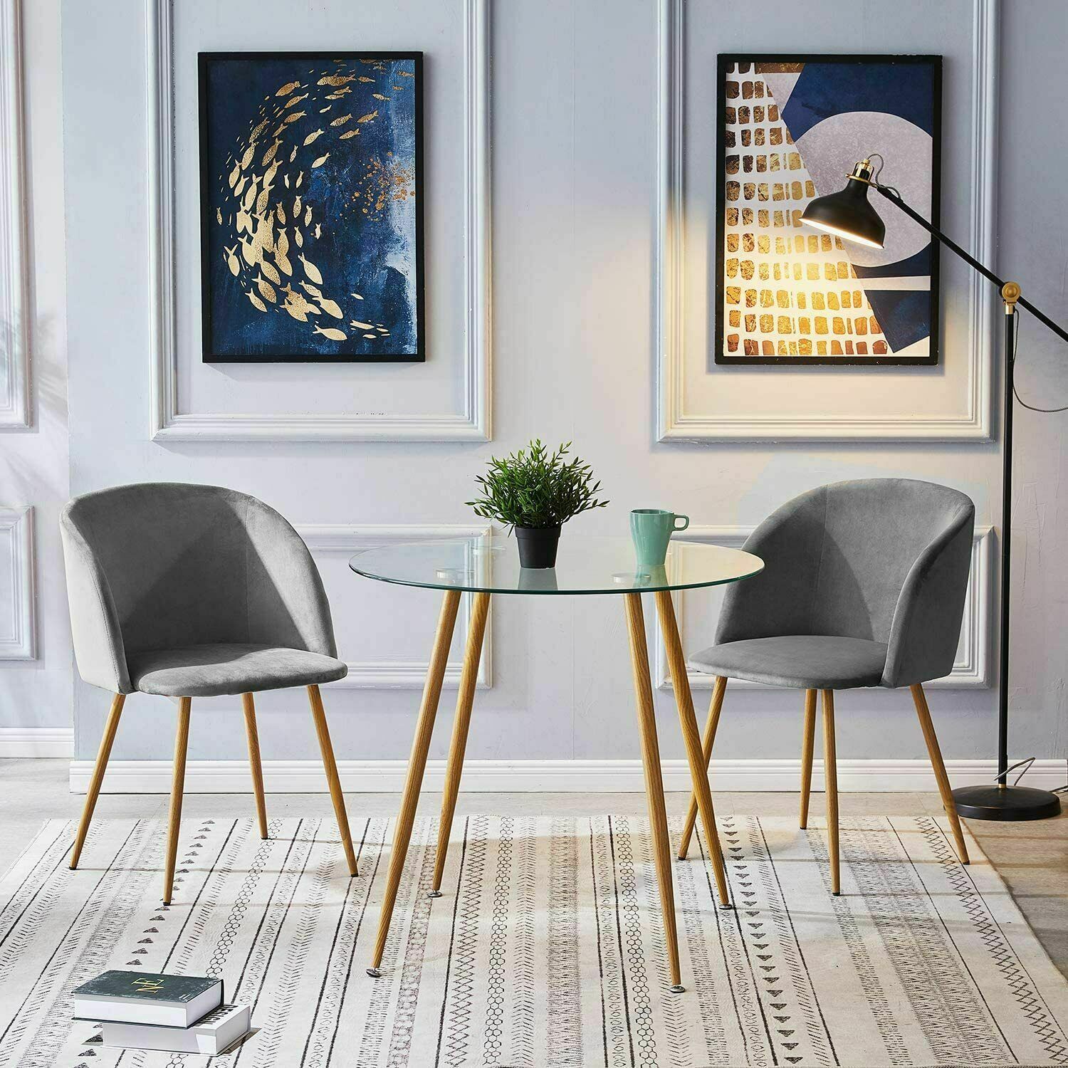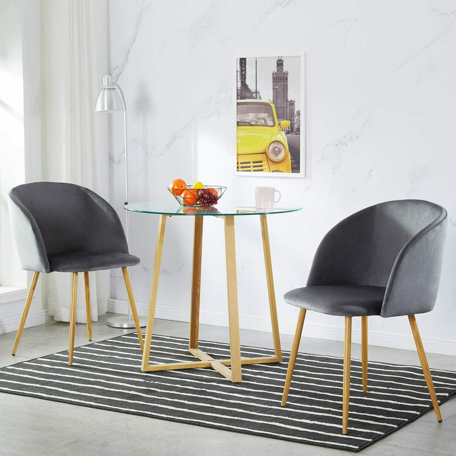 2x Retro Velvet Armchair Tub Chair Upholstered Seat with Wood Effect Metal Legs