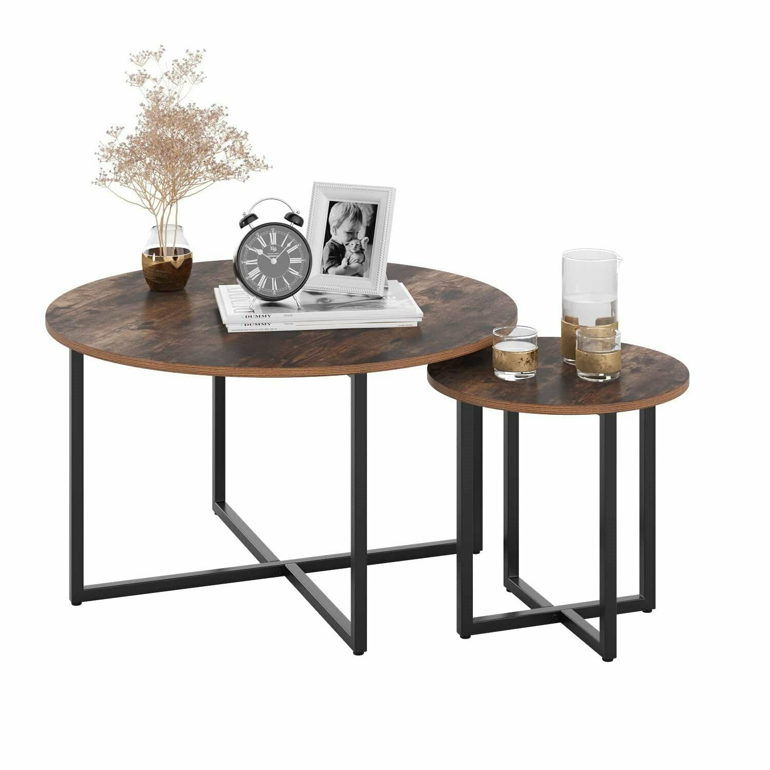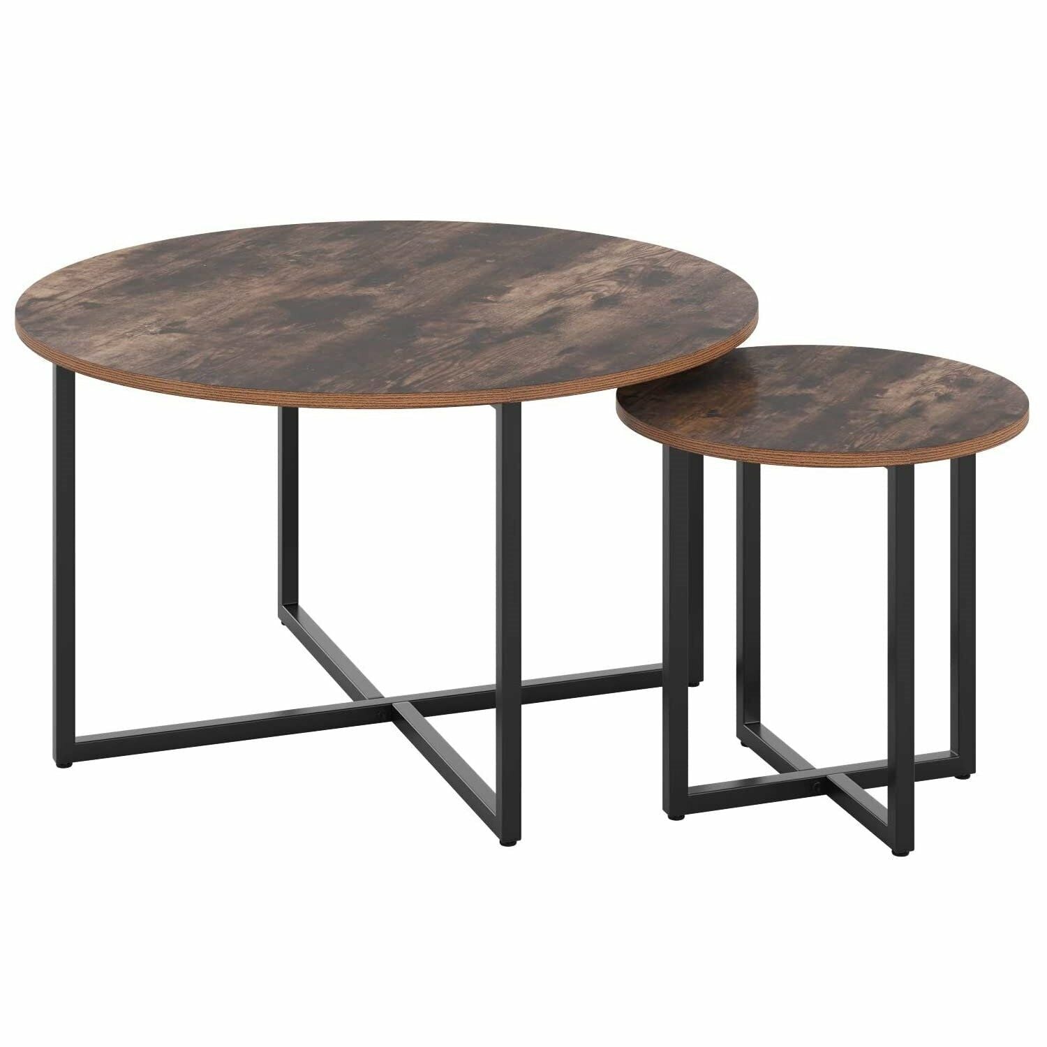 2x Round Industrial Coffee Table Nesting Tea Side Sofa Table with Metal Stand