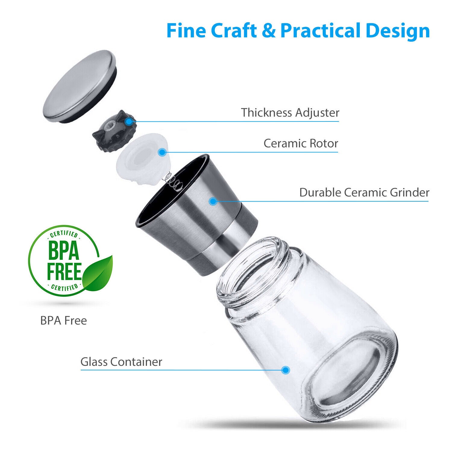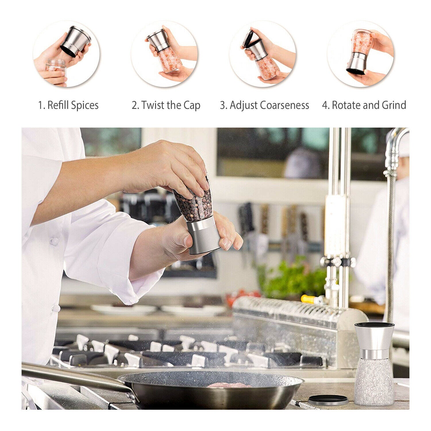 2x Salt Pepper Grinder Set Stainless Steel Glass Shaker Adjustable Mill Coarse