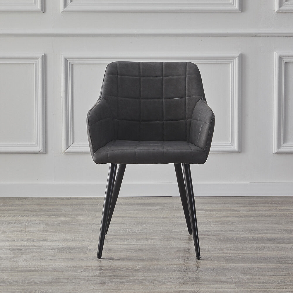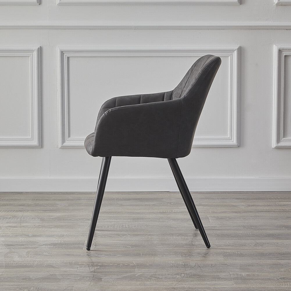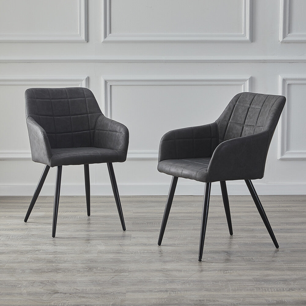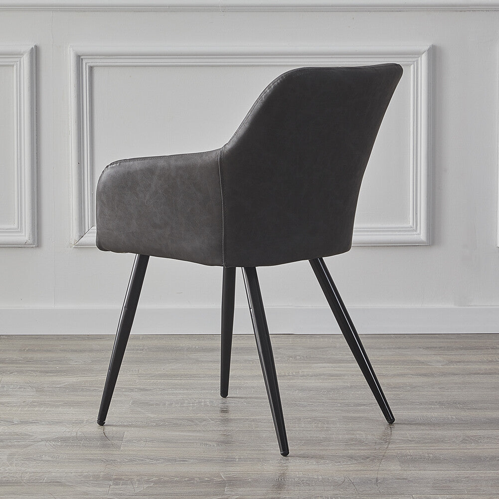 2X Used Faux Leather Dining Chairs PU Upholstered Metal Legs Tub Chair Dark Grey