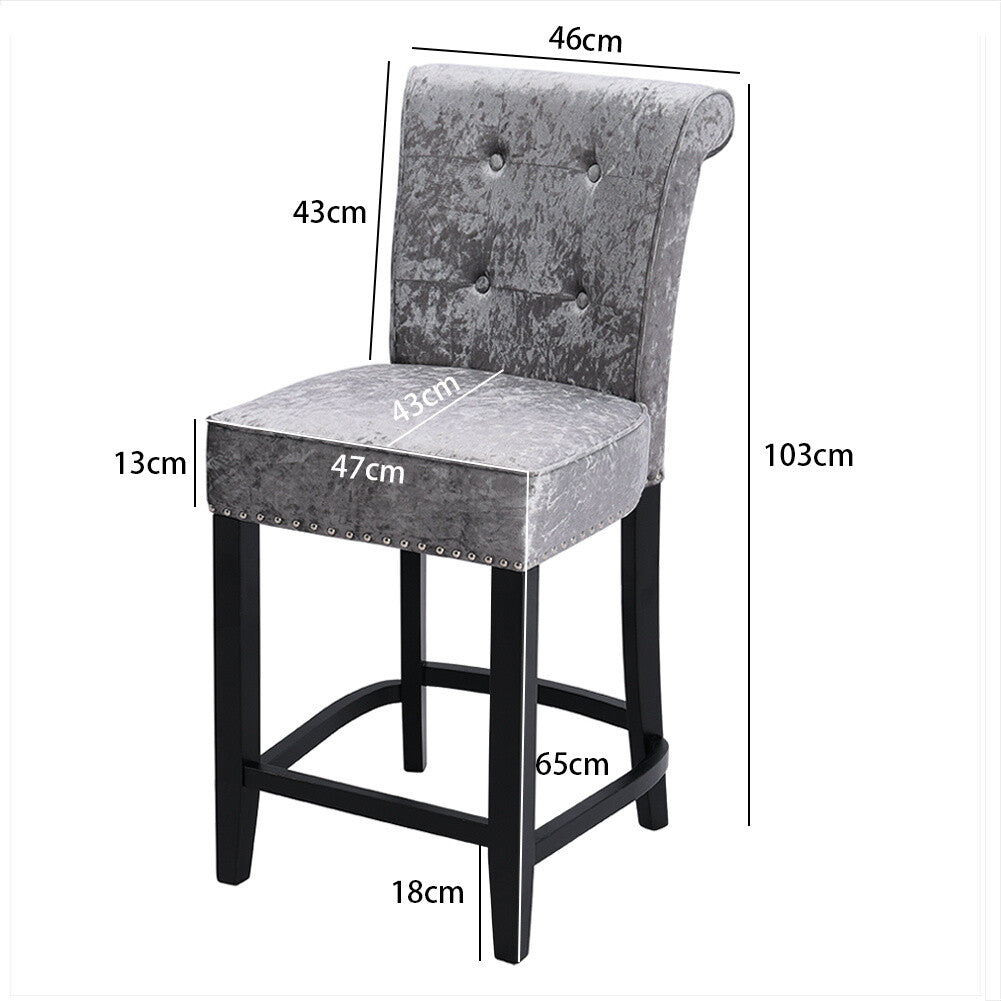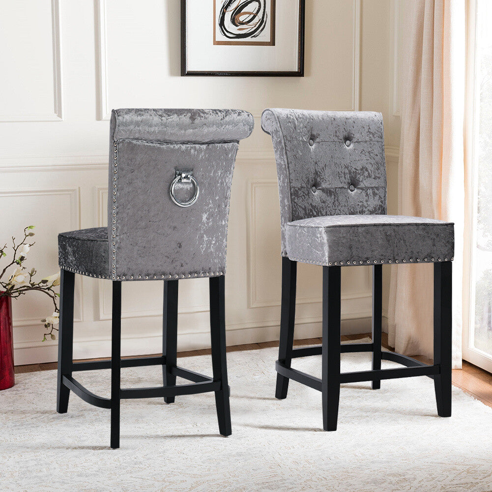 2x Velvet Bar Stools Chairs with Ring Knocker Backrest Kitchen Stools Breakfast