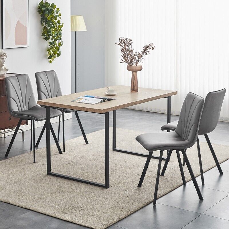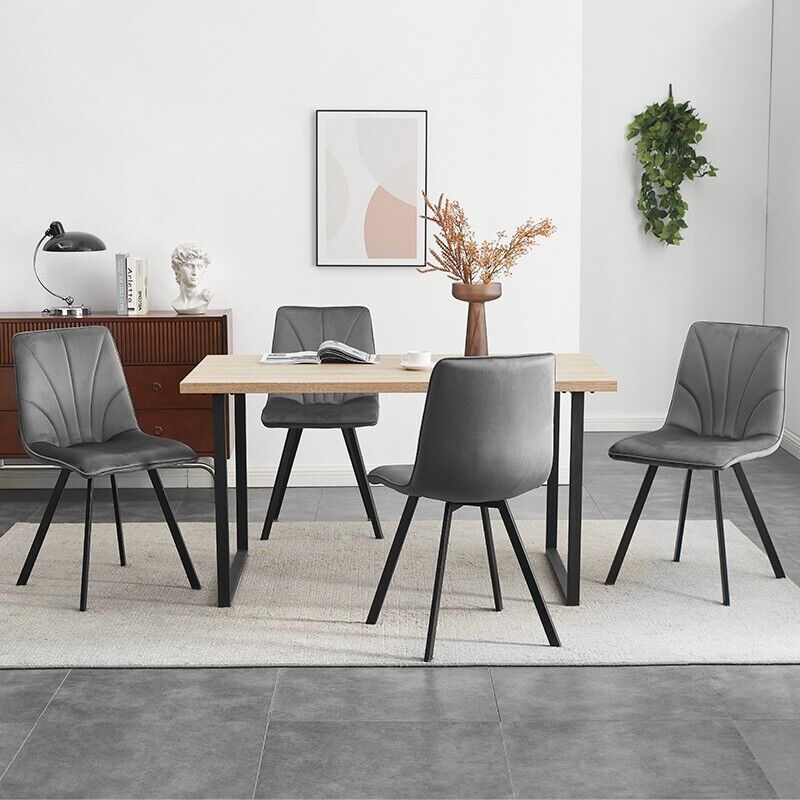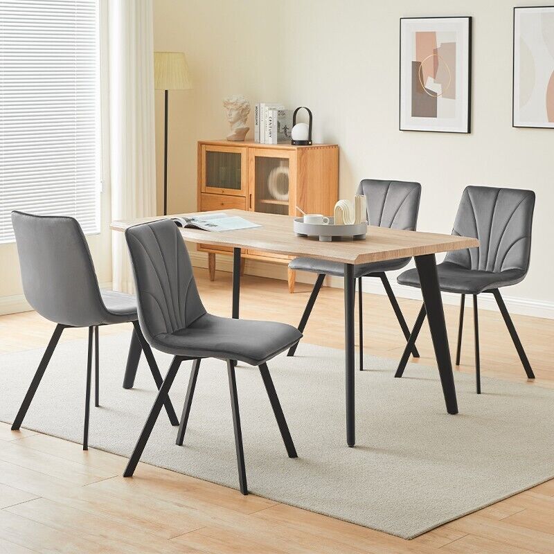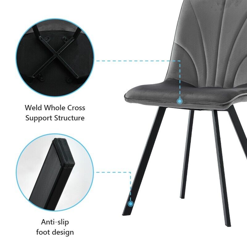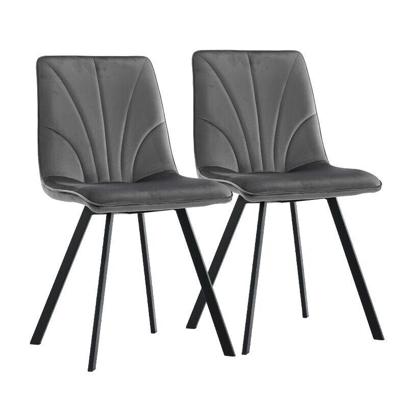 2x Velvet Dining Chairs Dining Room Chairs Grey Seat Metal Legs Home Furniture