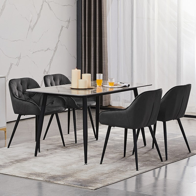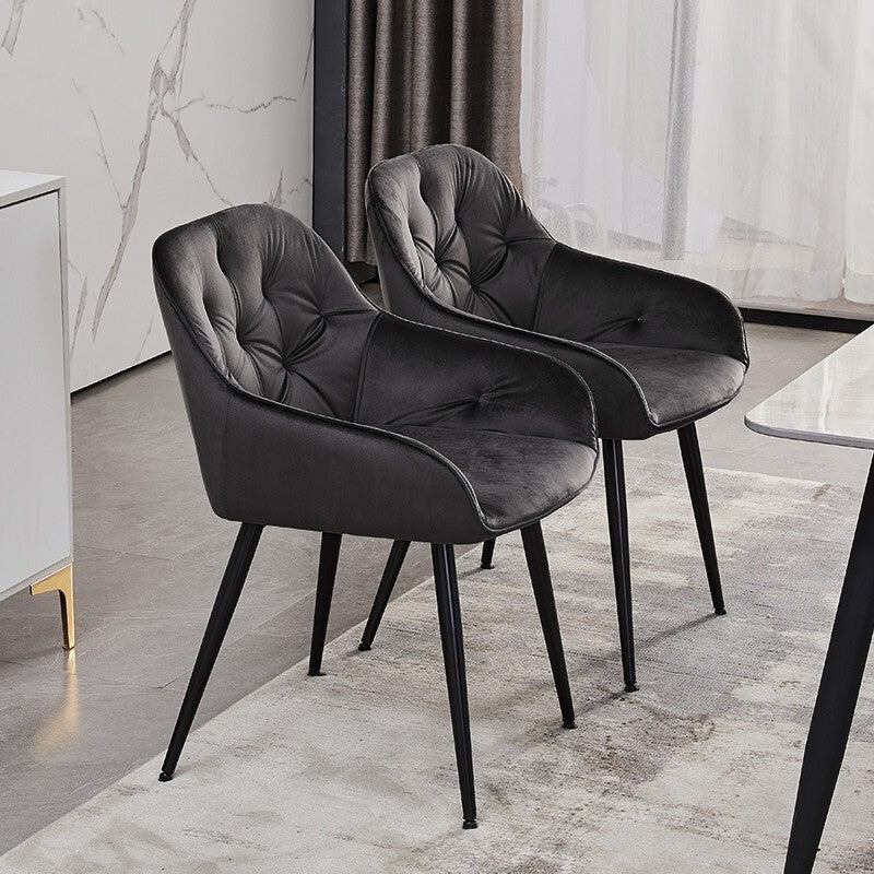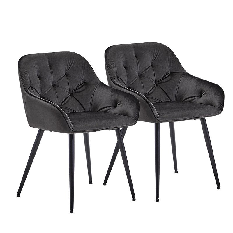 2X Velvet Dining Chairs Tufted Seat Metal Leg Dining Room Kitchen Chair Grey